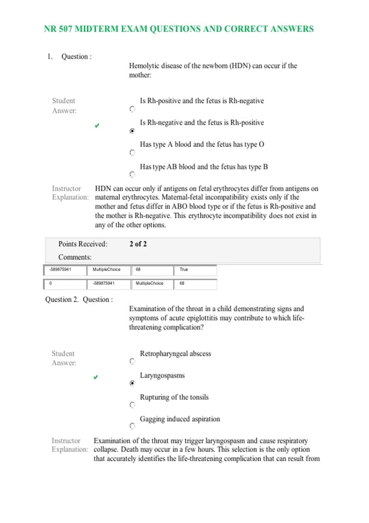 Points Received: 2 of 2