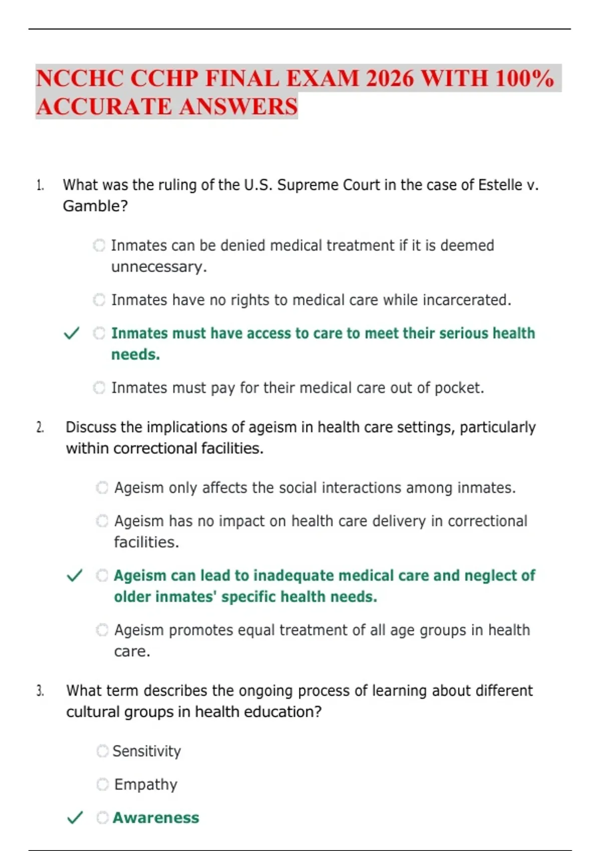 NCCHC CCHP FINAL EXAM 2026 WITH 100%