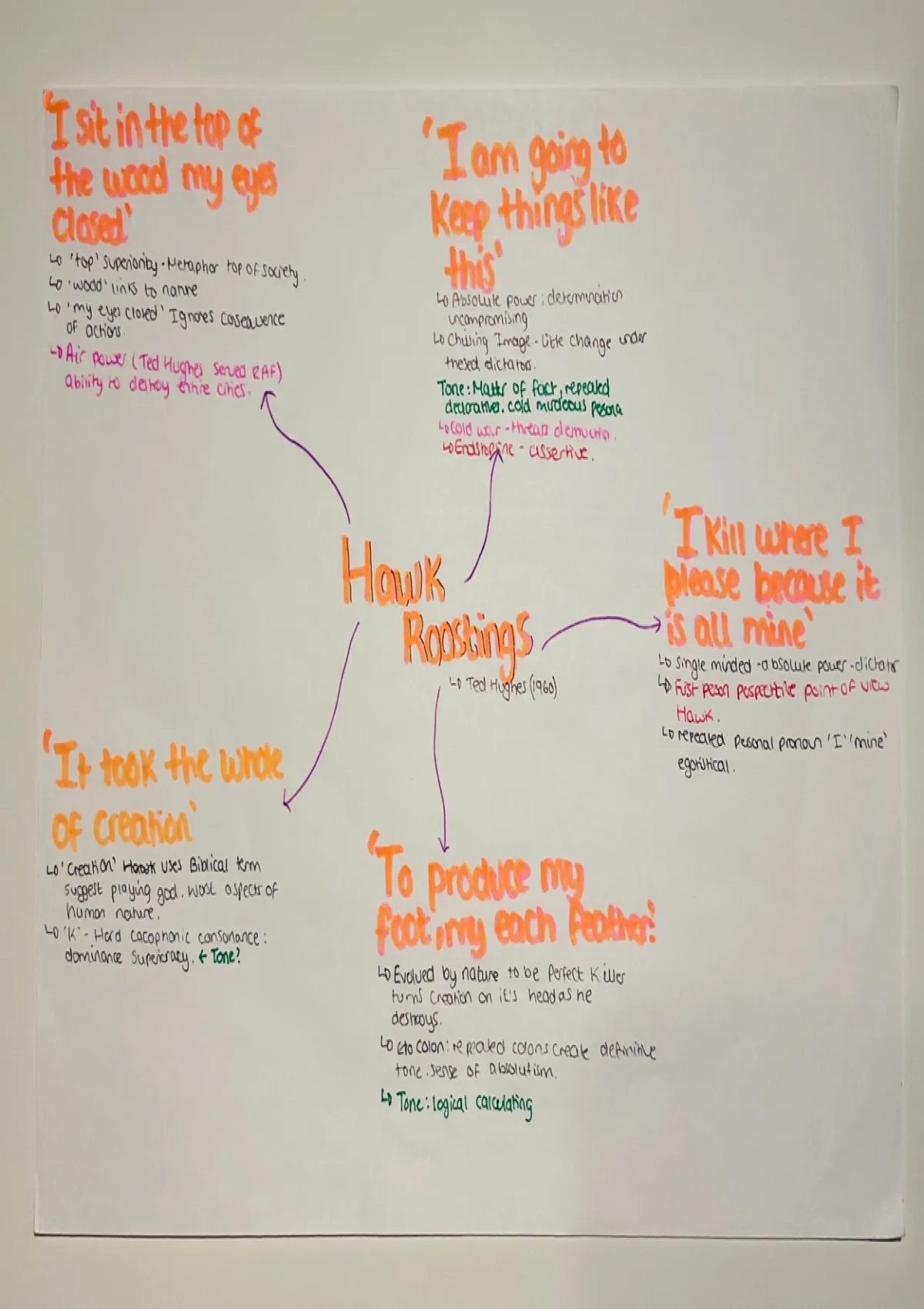 Summary Hawk Roosting – GCSE Poetry Mind Map | LT