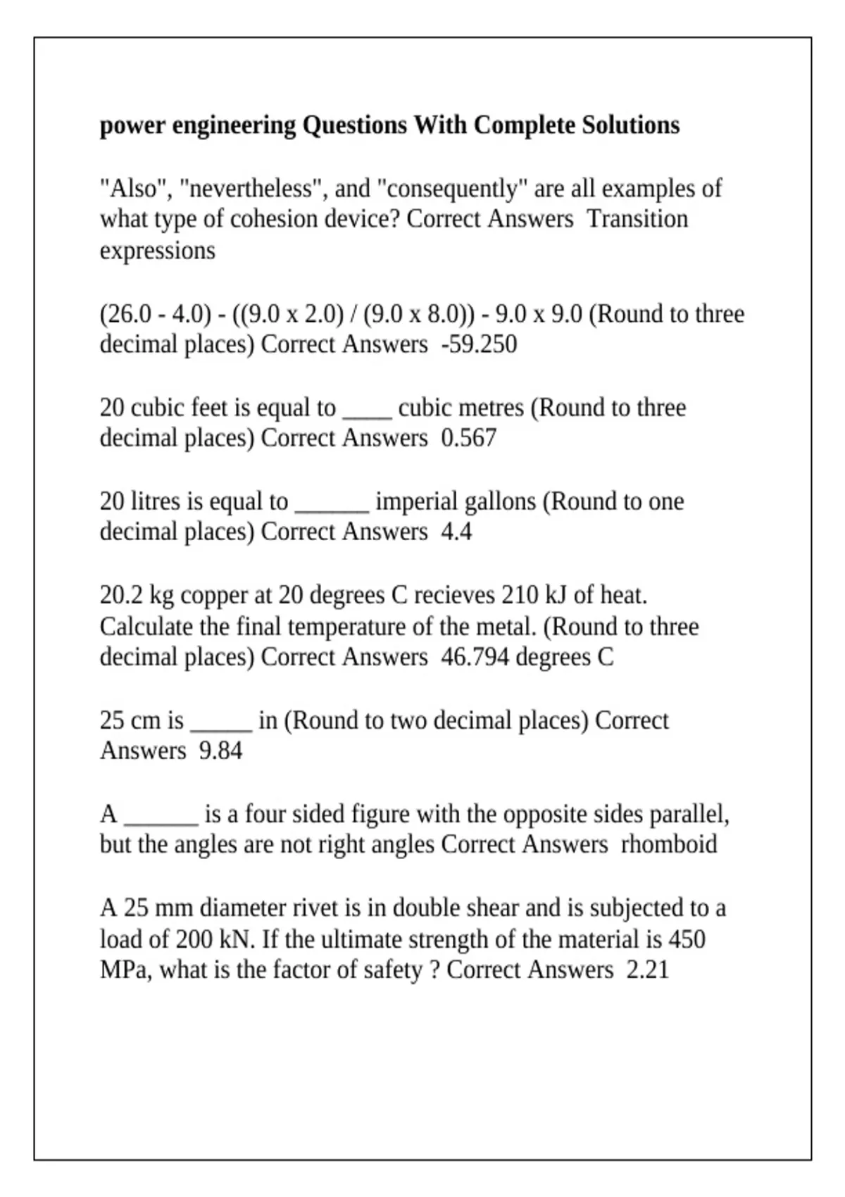 power engineering Questions With Complete Solutions