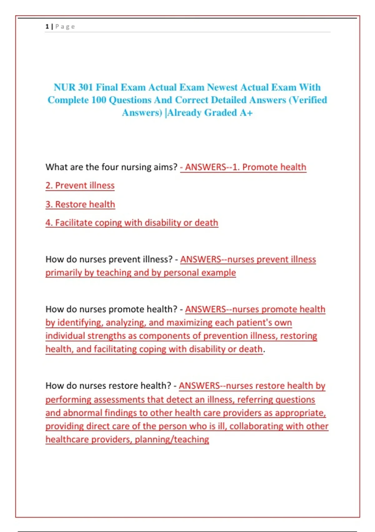 NUR 301 Final Exam Actual Exam Newest Actual Exam With