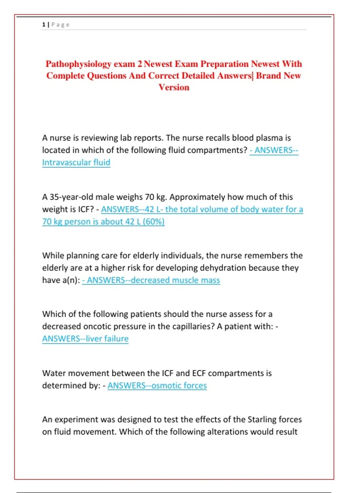 Pathophysiology exam 2 Newest Exam Preparation Newest With
