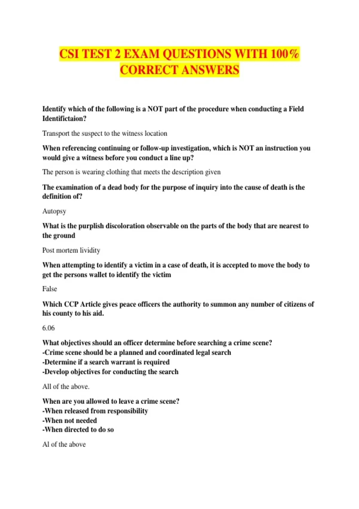 CSI TEST 2 EXAM QUESTIONS WITH 100%