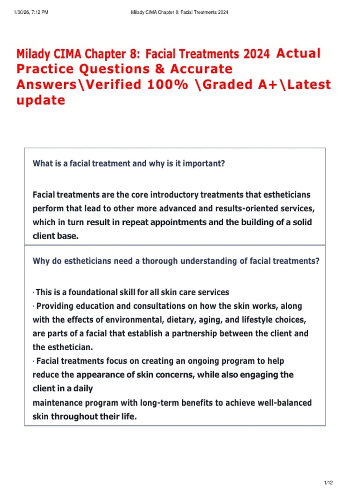 Milady CIMA Chapter 8: Facial Treatments 2024 Actual