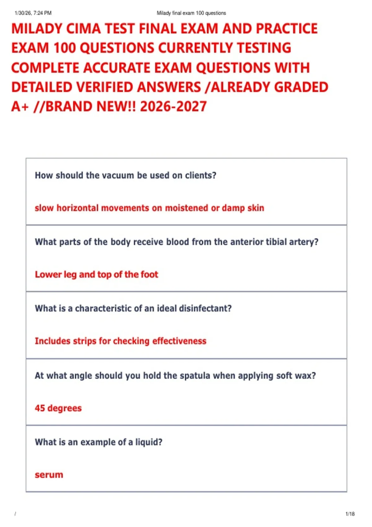 MILADY CIMA TEST FINAL EXAM AND PRACTICE EXAM 100 QUESTIONS CURRENTLY TESTING COMPLETE ACCURATE EXAM QUESTIONS WITH DETAILED VERIFIED ANSWERS /ALREADY GRADED A+ //BRAND NEW!! MILADY CIMA TEST FINAL EXAM AND PRACTICE EXAM 100 QUESTIONS CURRENTLY TESTING COMPLETE ACCURATE EXAM QUESTIONS WITH DETAILED VERIFIED ANSWERS /ALREADY GRADED A+ //BRAND NEW!! MILADY CIMA TEST FINAL EXAM AND PRACTICE EXAM 100 QUESTIONS CURRENTLY TESTING COMPLETE ACCURATE EXAM QUESTIONS WITH DETAILED VERIFIED ANSWERS /ALREADY GRADED A+ //BRAND NEW!! MILADY CIMA TEST FINAL EXAM AND PRACTICE EXAM 100 QUESTIONS CURRENTLY TESTING COMPLETE ACCURATE EXAM QUESTIONS WITH DETAILED VERIFIED ANSWERS /ALREADY GRADED A+ //BRAND NEW!! MILADY CIMA TEST FINAL EXAM AND PRACTICE EXAM 100 QUESTIONS CURRENTLY TESTING COMPLETE ACCURATE EXAM QUESTIONS WITH DETAILED VERIFIED ANSWERS /ALREADY GRADED A+ //BRAND NEW!! MILADY CIMA TEST FINAL EXAM AND PRACTICE EXAM 100 QUESTIONS CURRENTLY TESTING COMPLETE ACCURATE EXAM QUESTIONS WITH DETAILED VERIFIED ANSWERS /ALREADY GRADED A+ //BRAND NEW!! MILADY CIMA TEST FINAL EXAM AND PRACTICE EXAM 100 QUESTIONS CURRENTLY TESTING COMPLETE ACCURATE EXAM QUESTIONS WITH DETAILED VERIFIED ANSWERS /ALREADY GRADED A+ //BRAND NEW!! MILADY CIMA TEST FINAL EXAM AND PRACTICE EXAM 100 QUESTIONS CURRENTLY TESTING COMPLETE ACCURATE EXAM QUESTIONS WITH DETAILED VERIFIED ANSWERS /ALREADY GRADED A+ //BRAND NEW!! MILADY CIMA TEST FINAL EXAM AND PRACTICE EXAM 100 QUESTIONS CURRENTLY TESTING COMPLETE ACCURATE EXAM QUESTIONS WITH DETAILED VERIFIED ANSWERS /ALREADY GRADED A+ //BRAND NEW!! MILADY CIMA TEST FINAL EXAM AND PRACTICE EXAM 100 QUESTIONS CURRENTLY TESTING COMPLETE ACCURATE EXAM QUESTIONS WITH DETAILED VERIFIED ANSWERS /ALREADY GRADED A+ //BRAND NEW!! MILADY CIMA TEST FINAL EXAM AND PRACTICE EXAM 100 QUESTIONS CURRENTLY TESTING COMPLETE ACCURATE EXAM QUESTIONS WITH DETAILED VERIFIED ANSWERS /ALREADY GRADED A+ //BRAND NEW!!