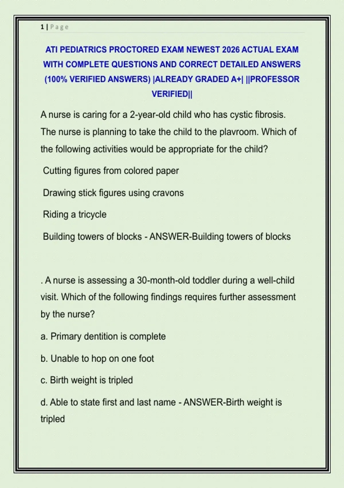 ATI PEDIATRICS PROCTORED EXAM NEWEST 2026 ACTUAL EXAM WITH COMPLETE QUESTIONS AND CORRECT DETAILED ANSWERS (100% VERIFIED ANSWERS) |ALREADY GRADED A+| ||PROFESSOR VERIFIED||