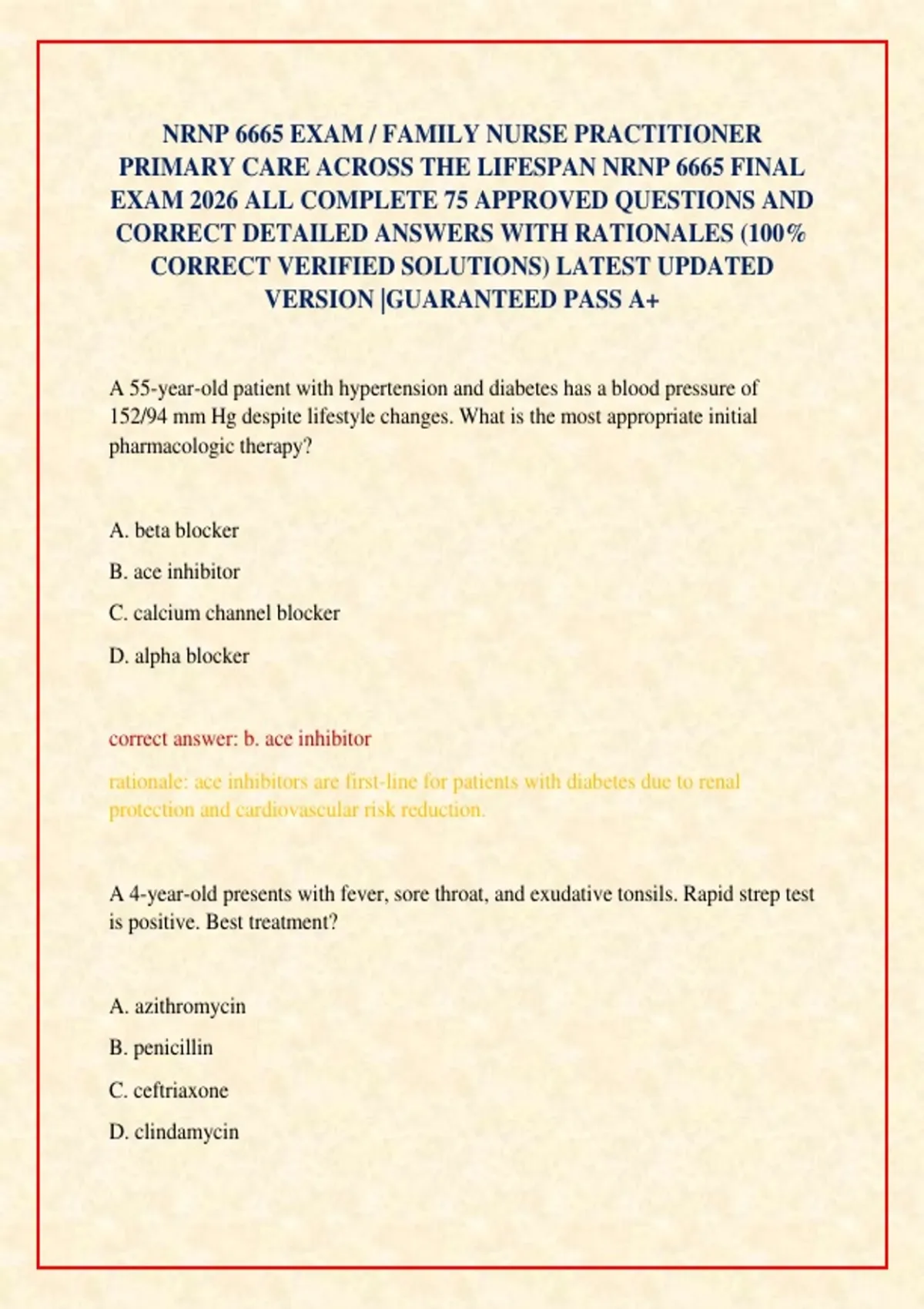 EXAM 2026 ALL COMPLETE 75 APPROVED QUESTIONS AND
