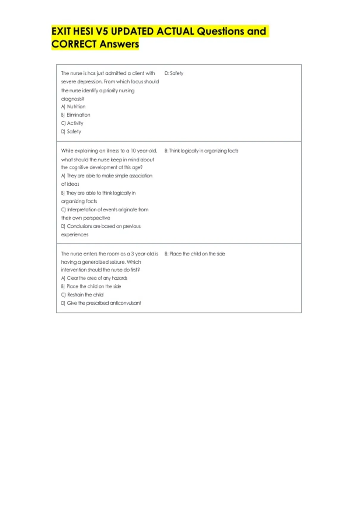 EXIT HESI V5 UPDATED ACTUAL Questions and