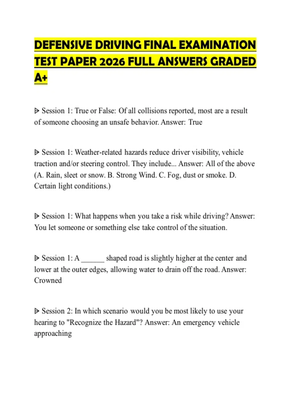TEST PAPER 2026 FULL ANSWERS GRADED