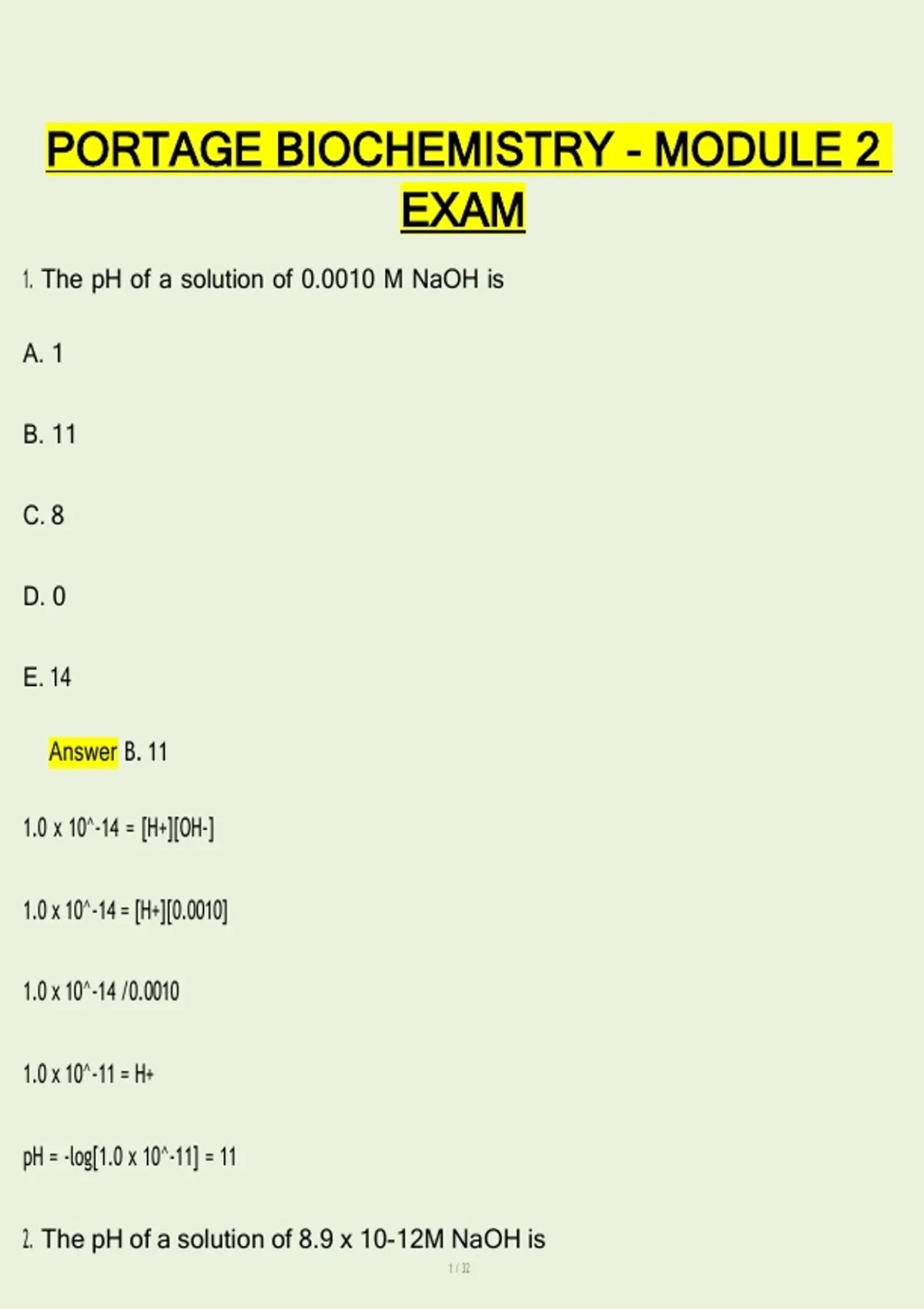 2. The pH of a solution of 8.9 x 10-12M NaOH is