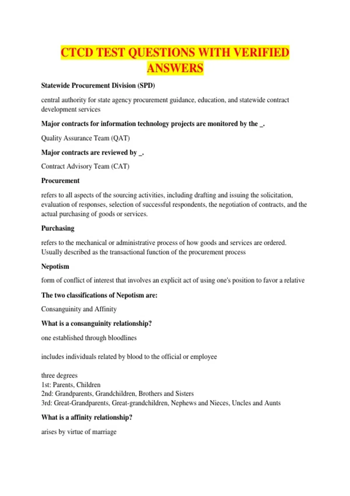CTCD TEST QUESTIONS WITH VERIFIED