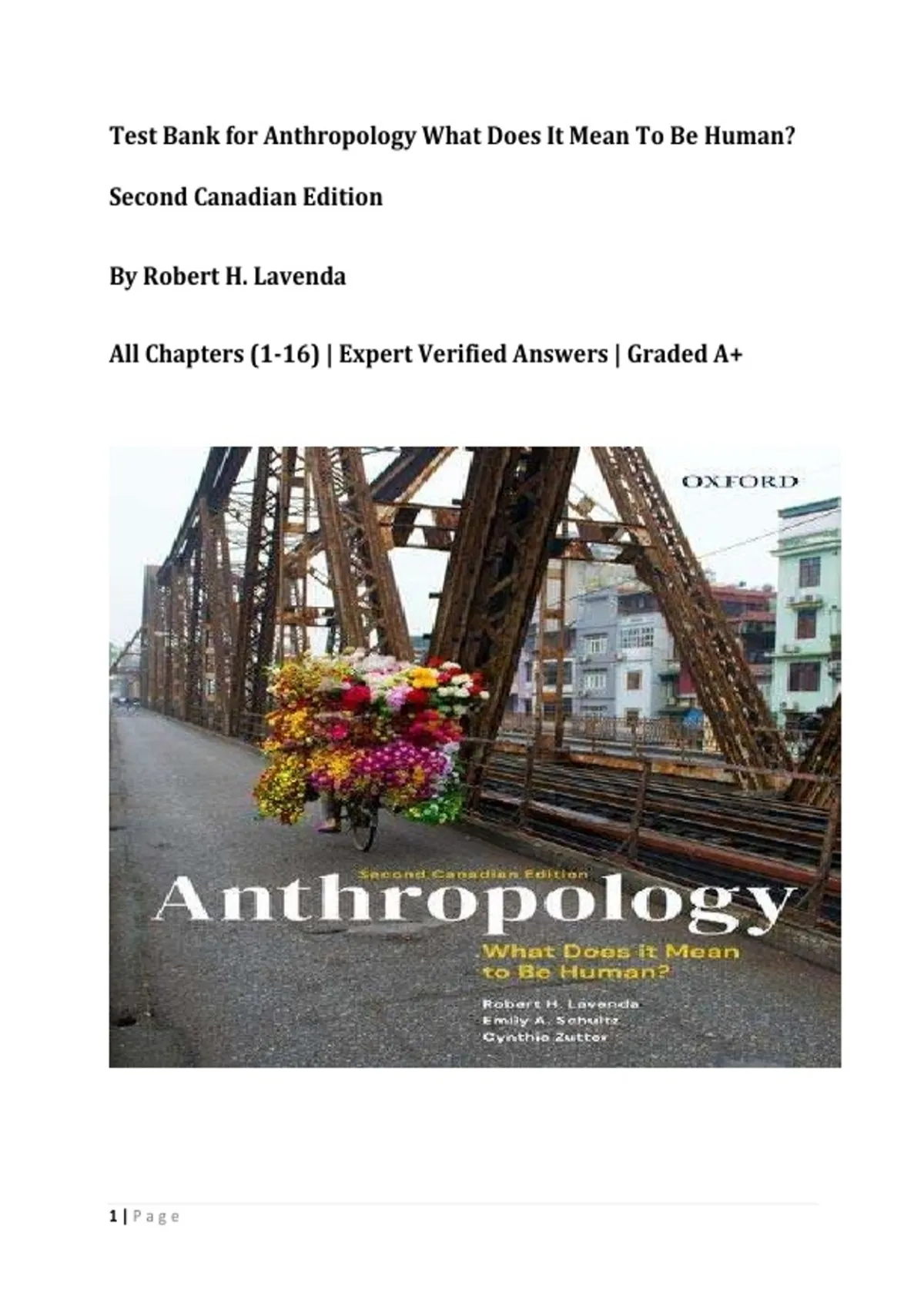 Test Bank for Anthropology :What Does It Mean To Be Human? Second Canadian Edition By Robert H. Lavenda |All Chapters (1-16) | Expert Verified Answers | Graded A+