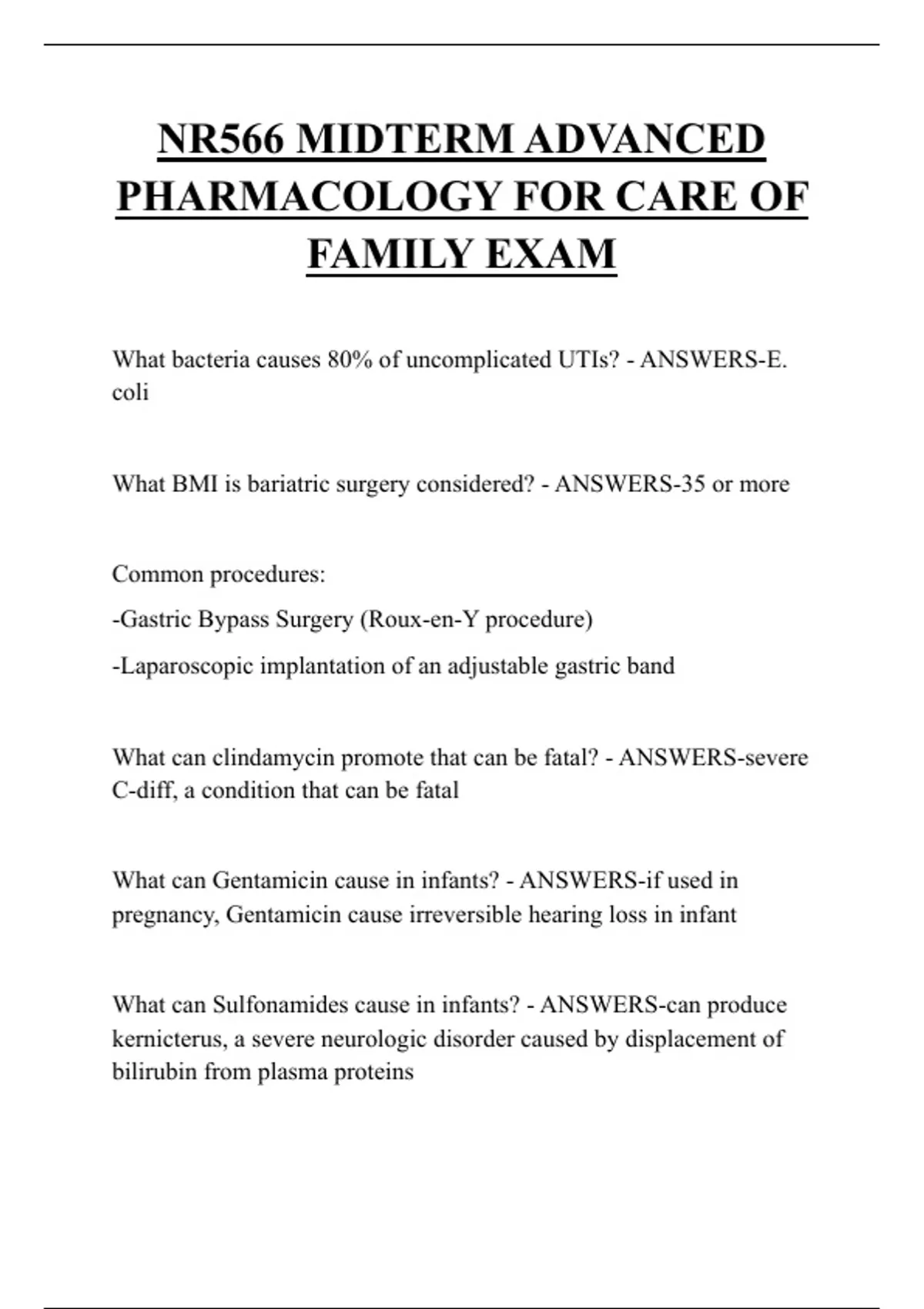 NR566 MIDTERM ADVANCED PHARMACOLOGY FOR CARE OF FAMILY EXAM QUESTIONS AND ANSWERS 2026
