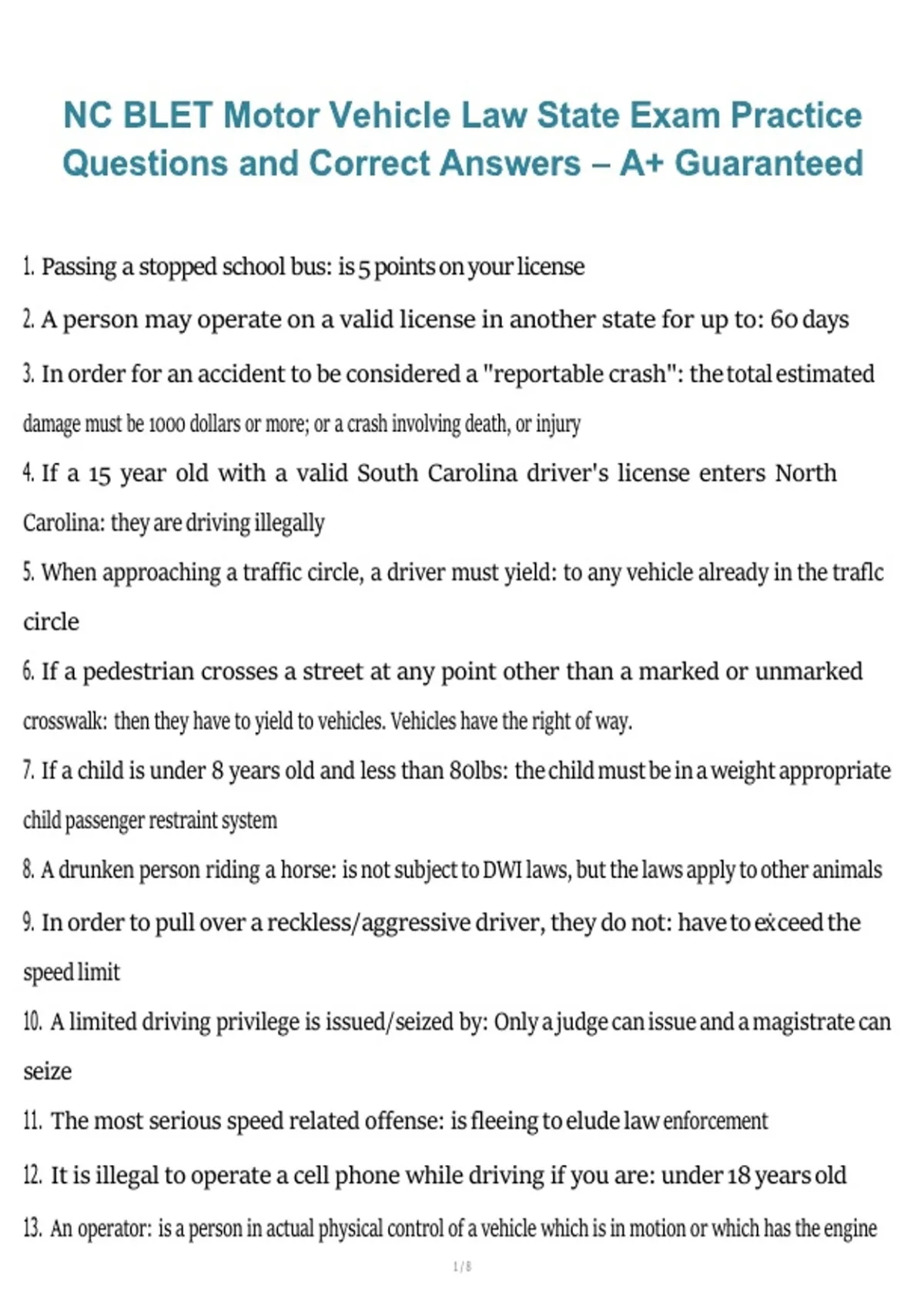 9. In order to pull over a reckless/aggressive driver, they do not: have to eẋceed the