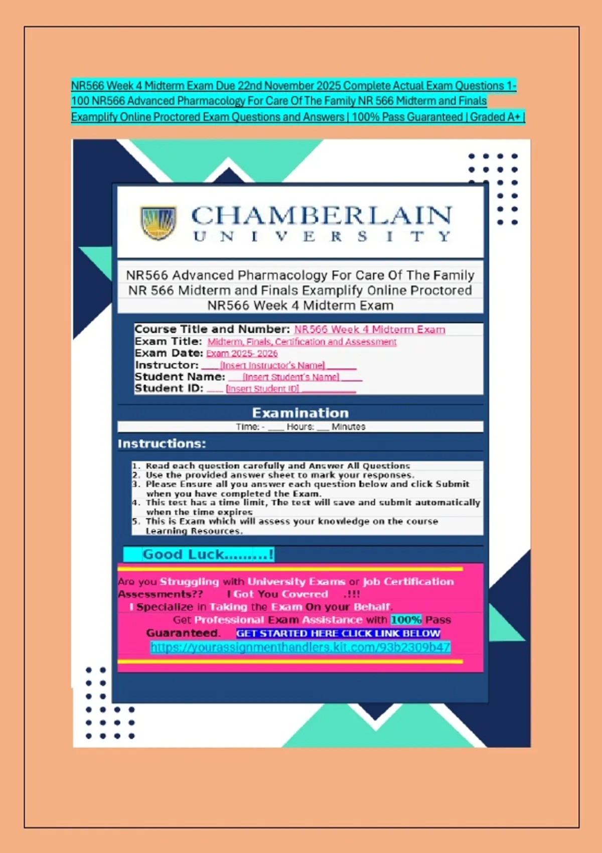 NR566 Week 4 Midterm Exam Due 22nd November 2025 Complete Actual Exam Questions 1- 100 NR566 Advanced Pharmacology For Care Of The Family NR 566 Midterm and Finals Examplify Online Proctored Exam Questions and Answers | 100% Pass Guaranteed | Graded A+ |