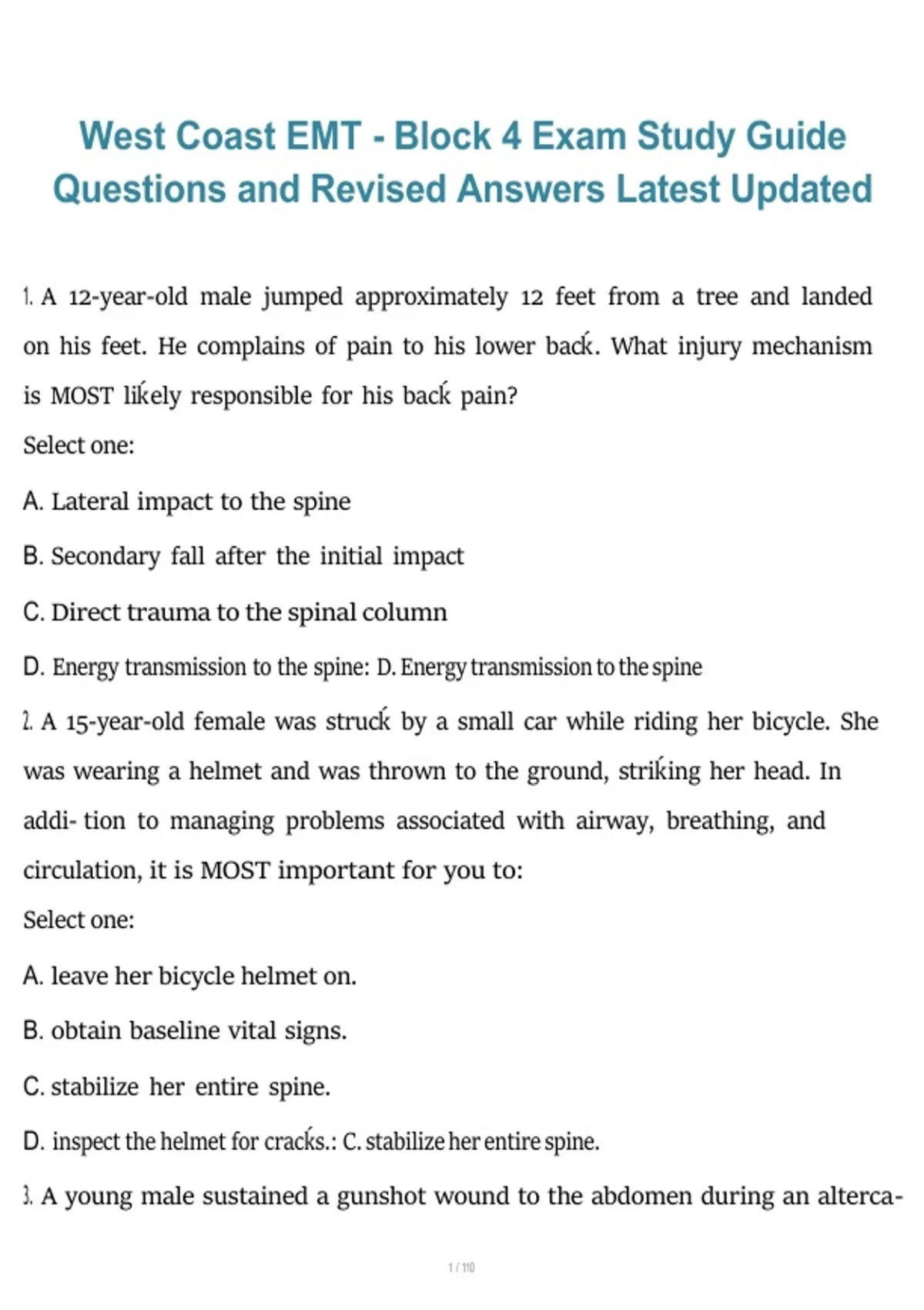 1. A 12-year-old male jumped approximately 12 feet from a tree and landed