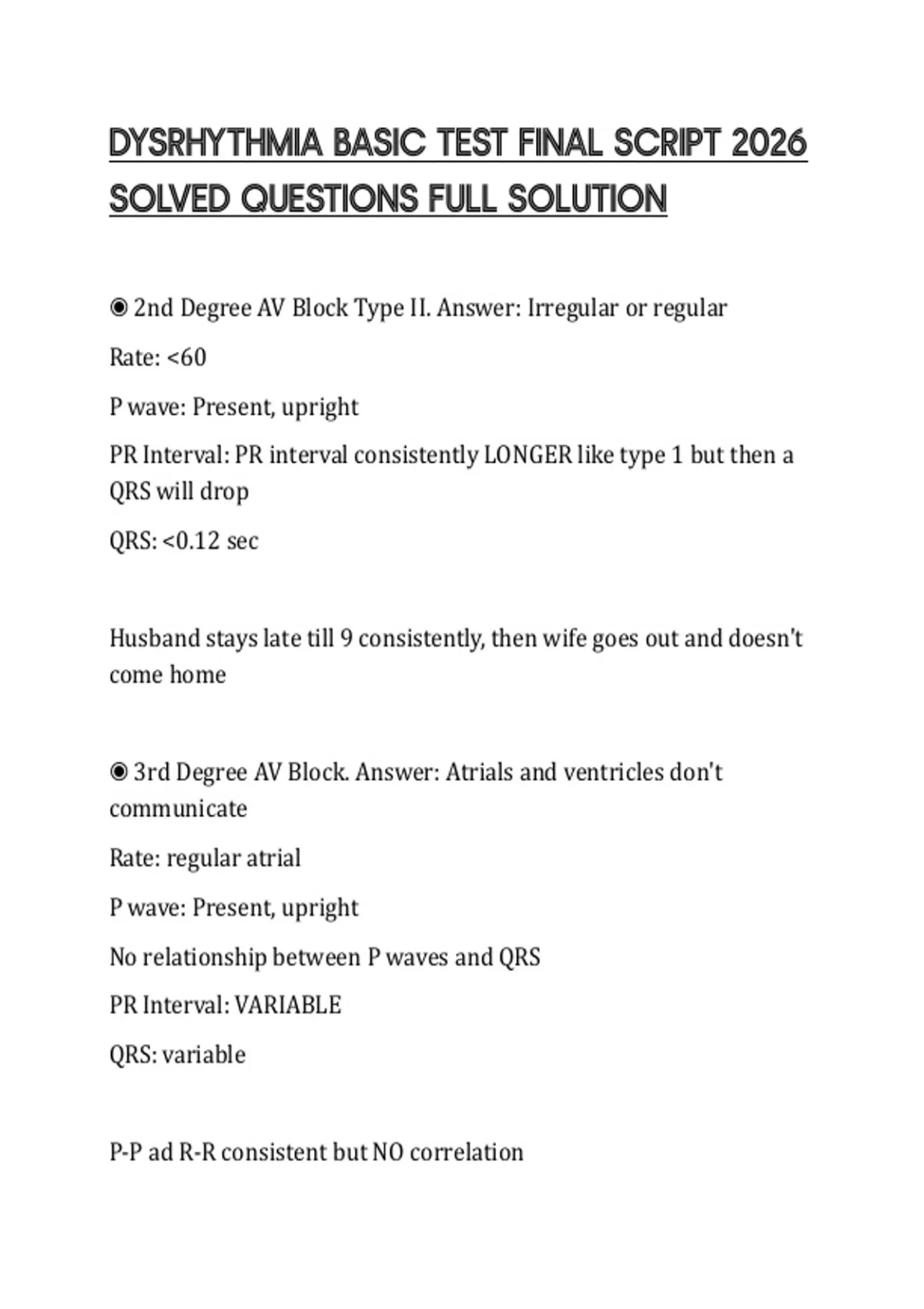 DYSRHYTHMIA BASIC TEST FINAL SCRIPT 2026 SOLVED QUESTIONS FULL SOLUTION