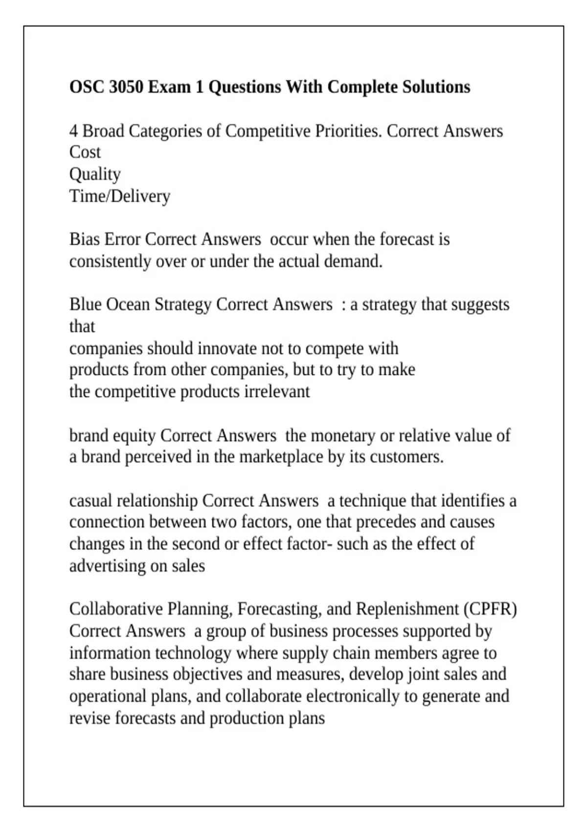 OSC 3050 Exam 1 Questions With Complete Solutions