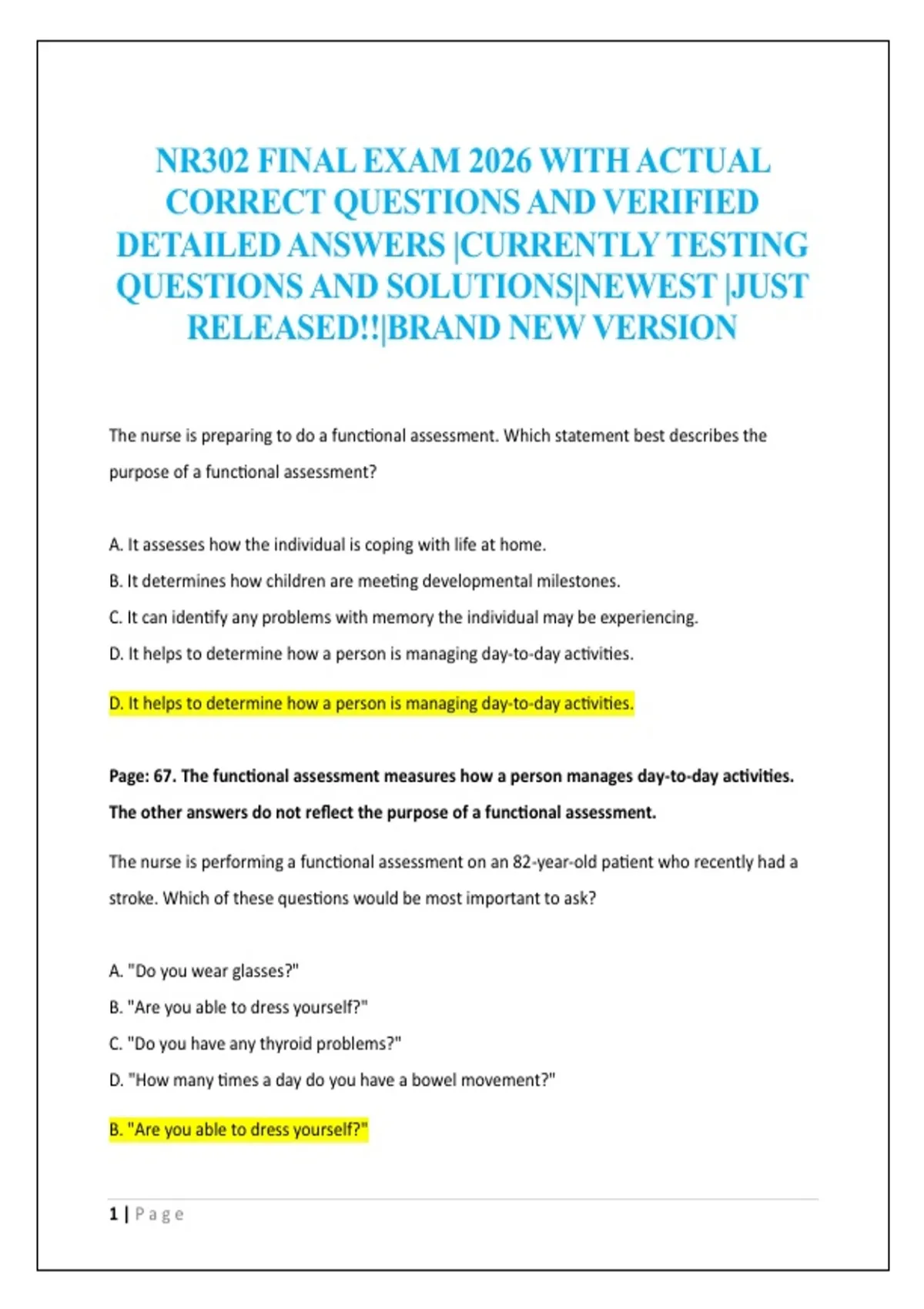 NR302 FINAL EXAM 2026 WITH ACTUAL CORRECT QUESTIONS AND VERIFIED DETAILED ANSWERS |CURRENTLY TESTING QUESTIONS AND SOLUTIONS|NEWEST |JUST RELEASED!!|BRAND NEW VERSION