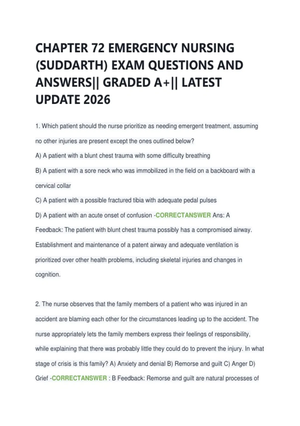 Feedback: The patient with blunt chest trauma possibly has a compromised airway.