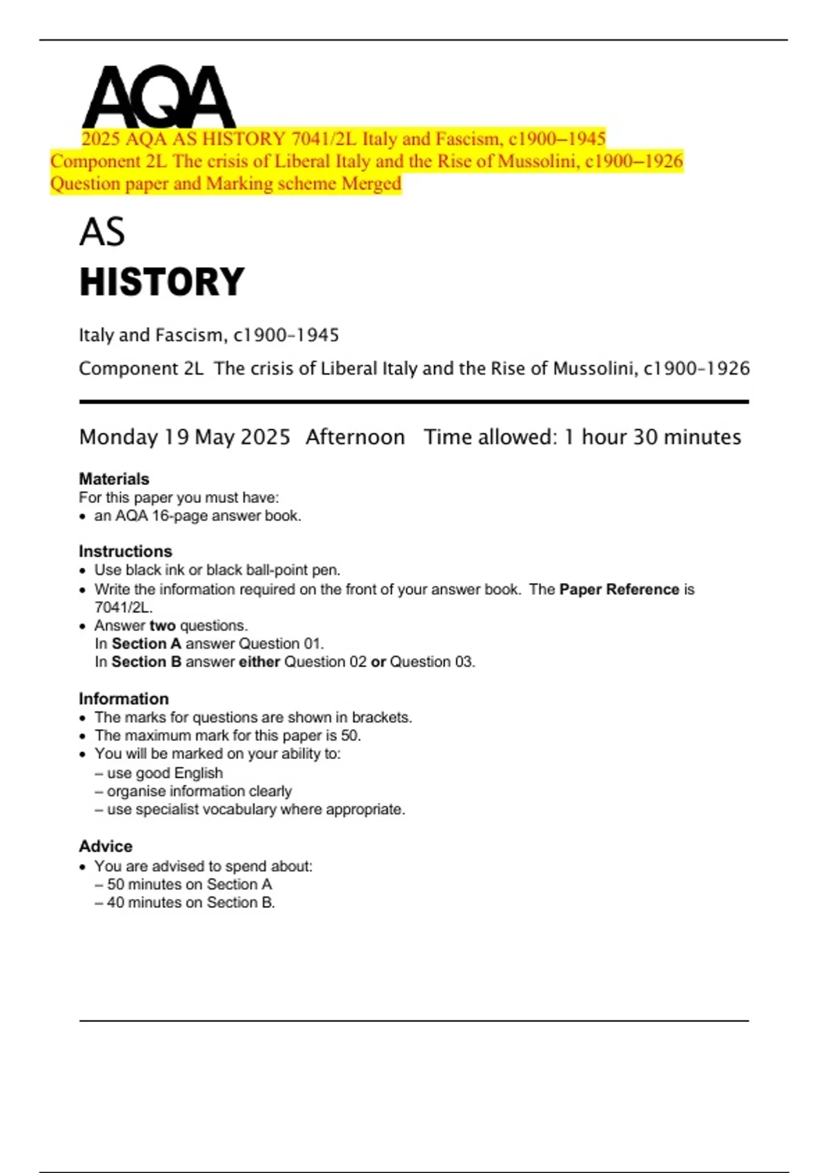 • The maximum mark for this paper is 50.