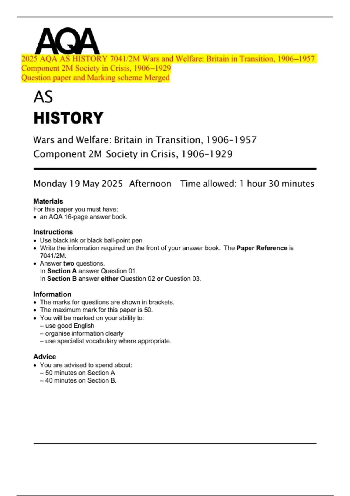 Monday 19 May 2025 Afternoon Time allowed: 1 hour 30 minutes