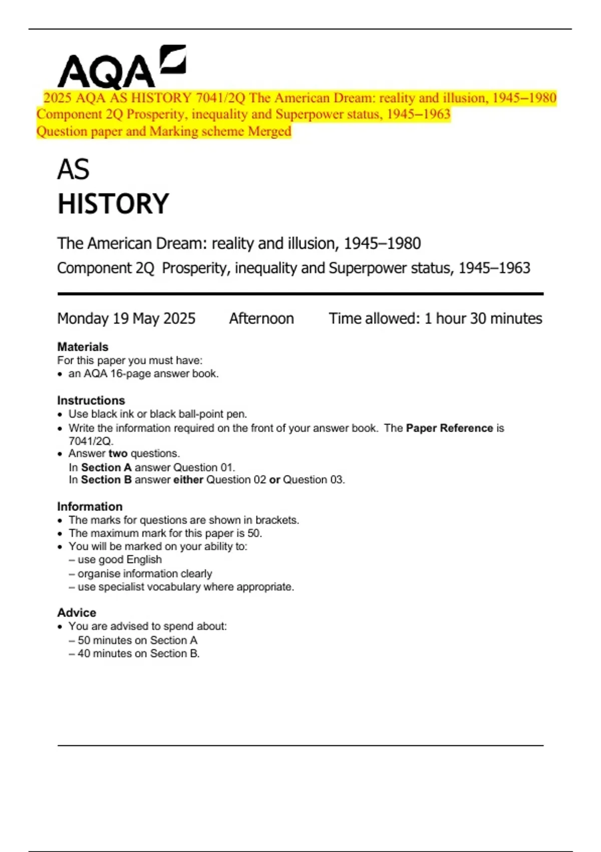 • The maximum mark for this paper is 50.