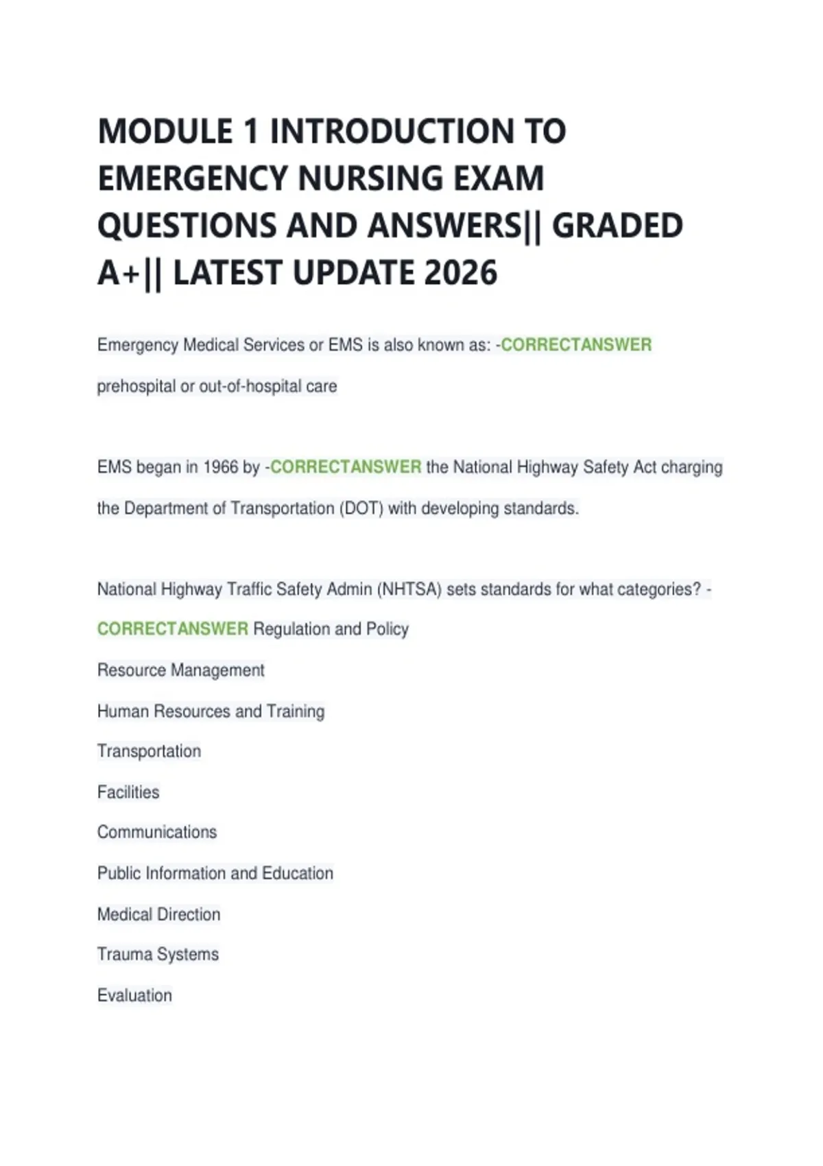 MODULE 1 INTRODUCTION TO EMERGENCY NURSING EXAM QUESTIONS AND ANSWERS|| GRADED A+|| LATEST UPDATE 2026