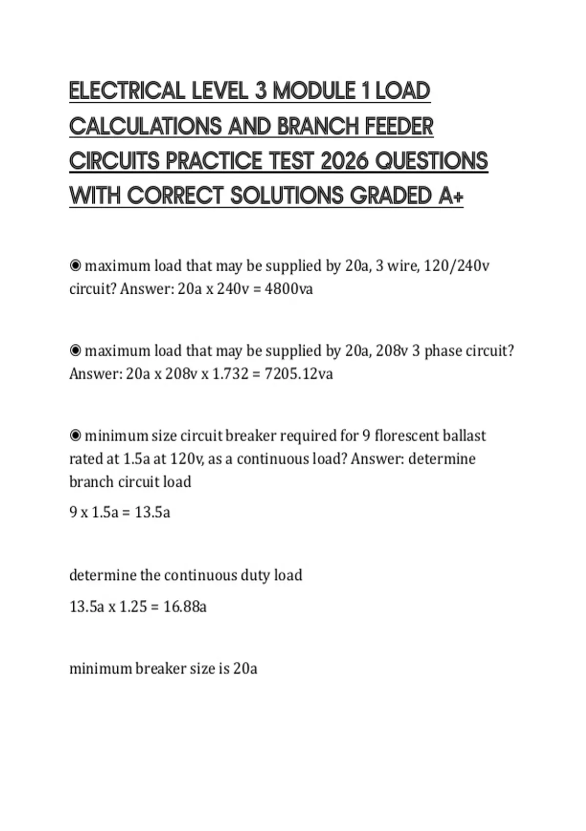 ELECTRICAL LEVEL 3 MODULE 1 LOAD