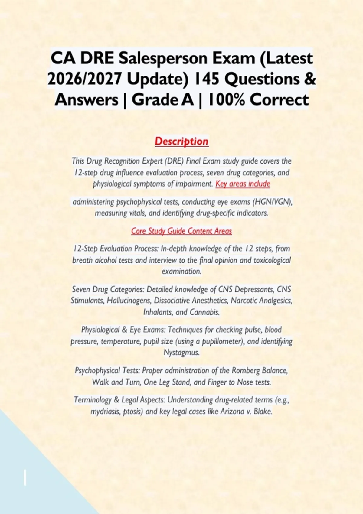 This Drug Recognition Expert (DRE) Final Exam study guide covers the