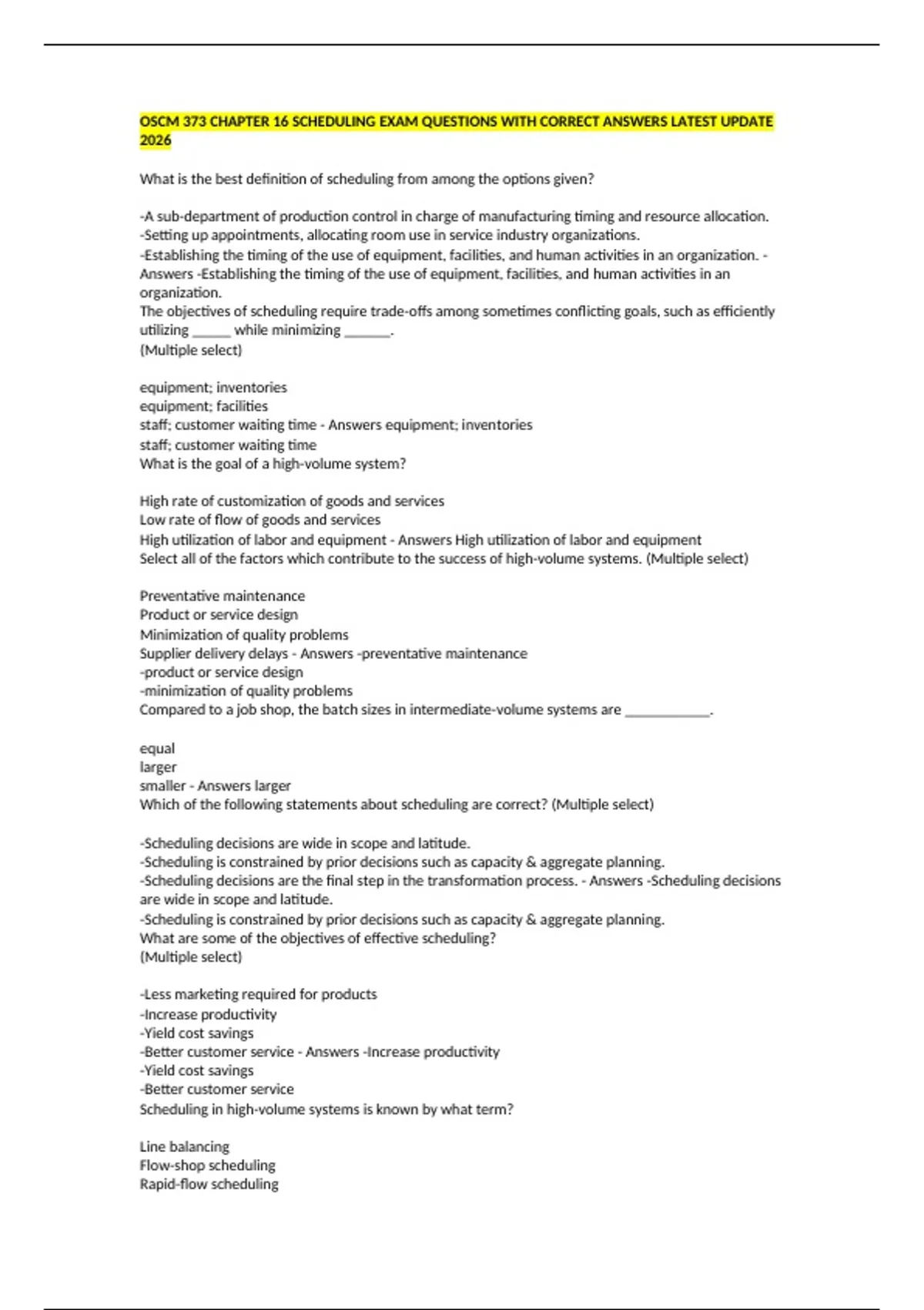 -Scheduling decisions are the final step in the transformation process. - Answers -Scheduling decisions