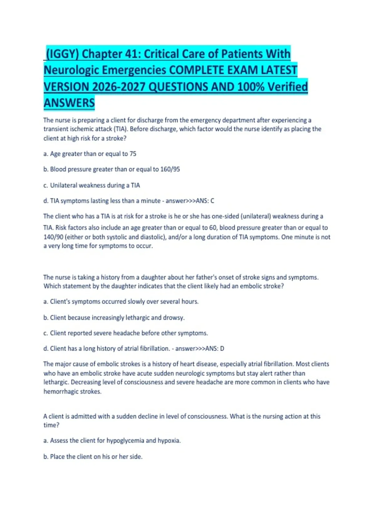 (IGGY) Chapter 41 Critical Care of Patients With Neurologic Emergencies COMPLETE EXAM LATEST VERSION QUESTIONS AND 100- Verified ANSWERS .pdf