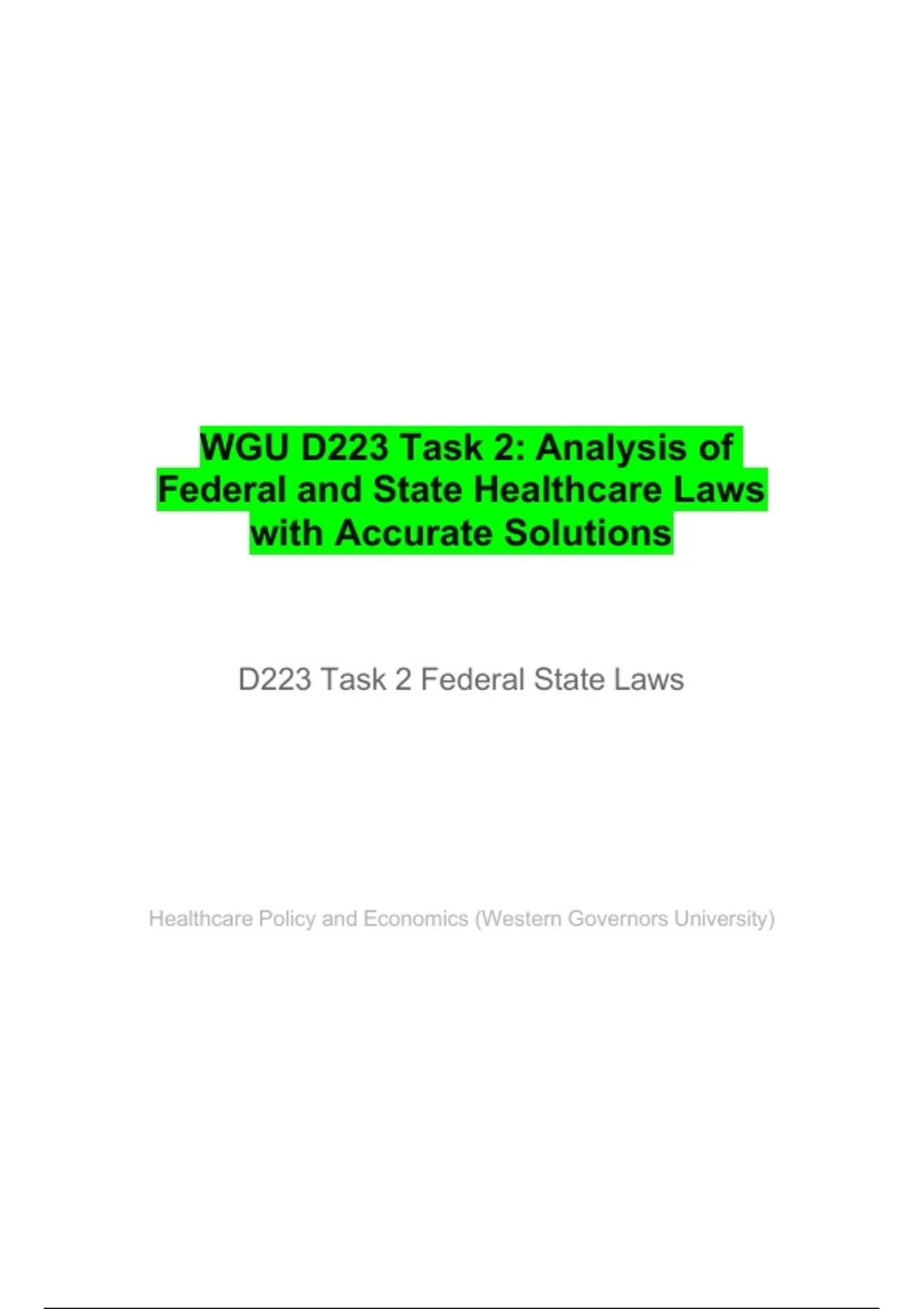 WGU D223 Task 2: Analysis of Federal and State Healthcare Laws with Accurate Solutions