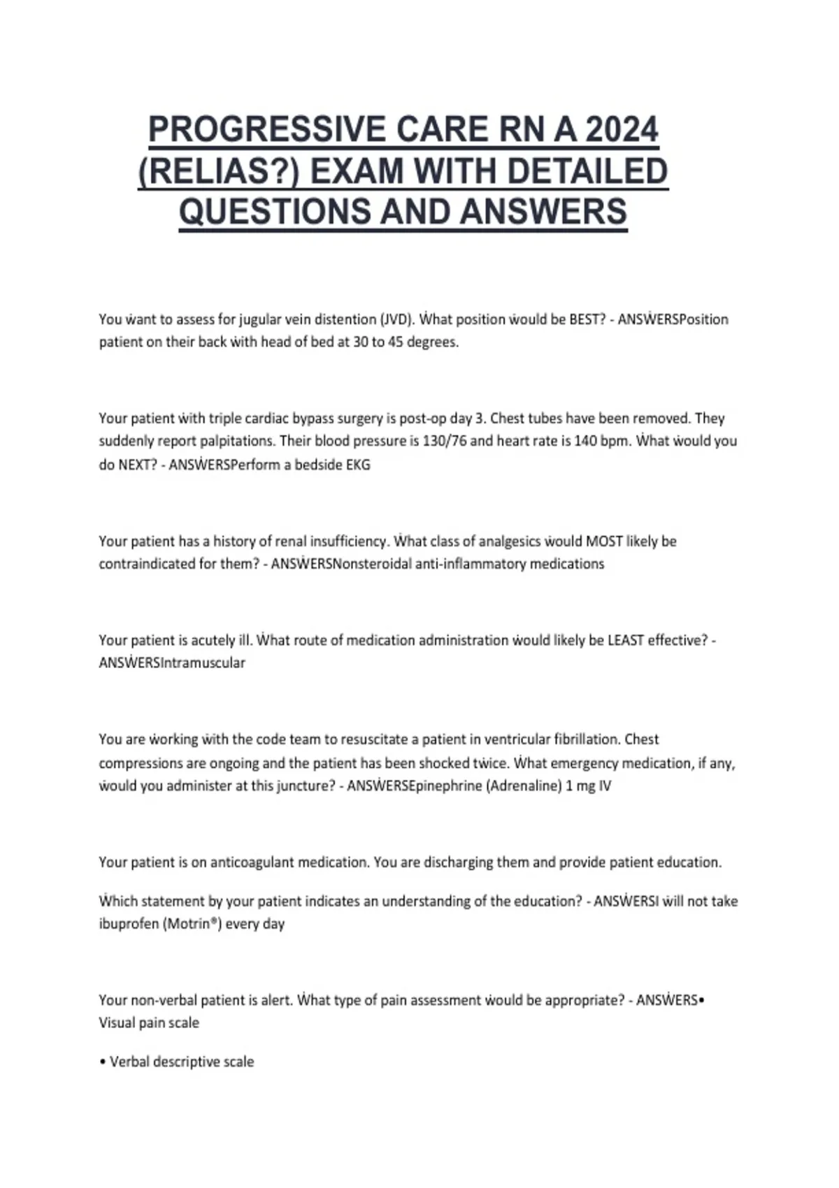 (RELIAS?) EXAM WITH DETAILED