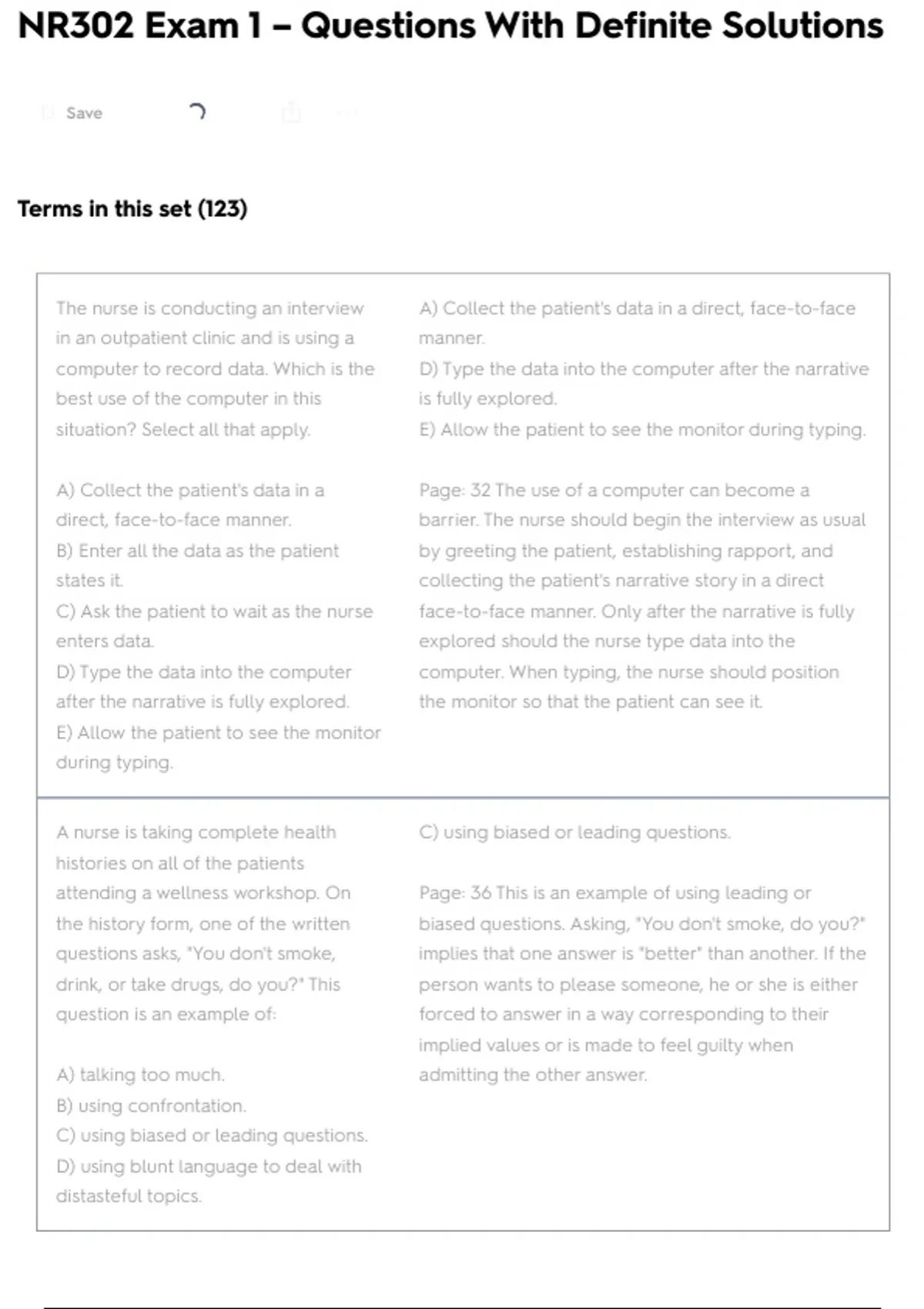 The nurse is conducting an interview A) Collect the patient's data in a direct, face-to-face