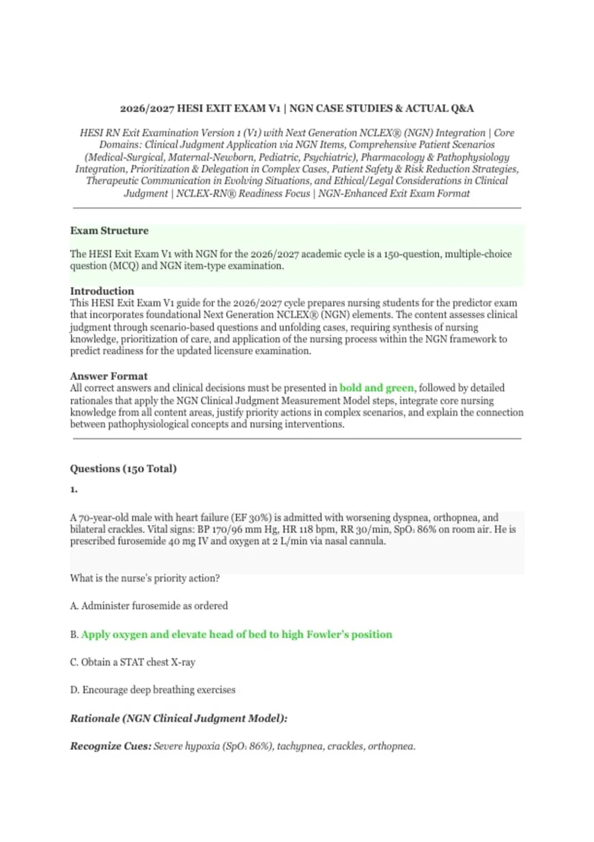 The HESI Exit Exam V1 with NGN for the 2026/2027 academic cycle is a 150-question, multiple-choice