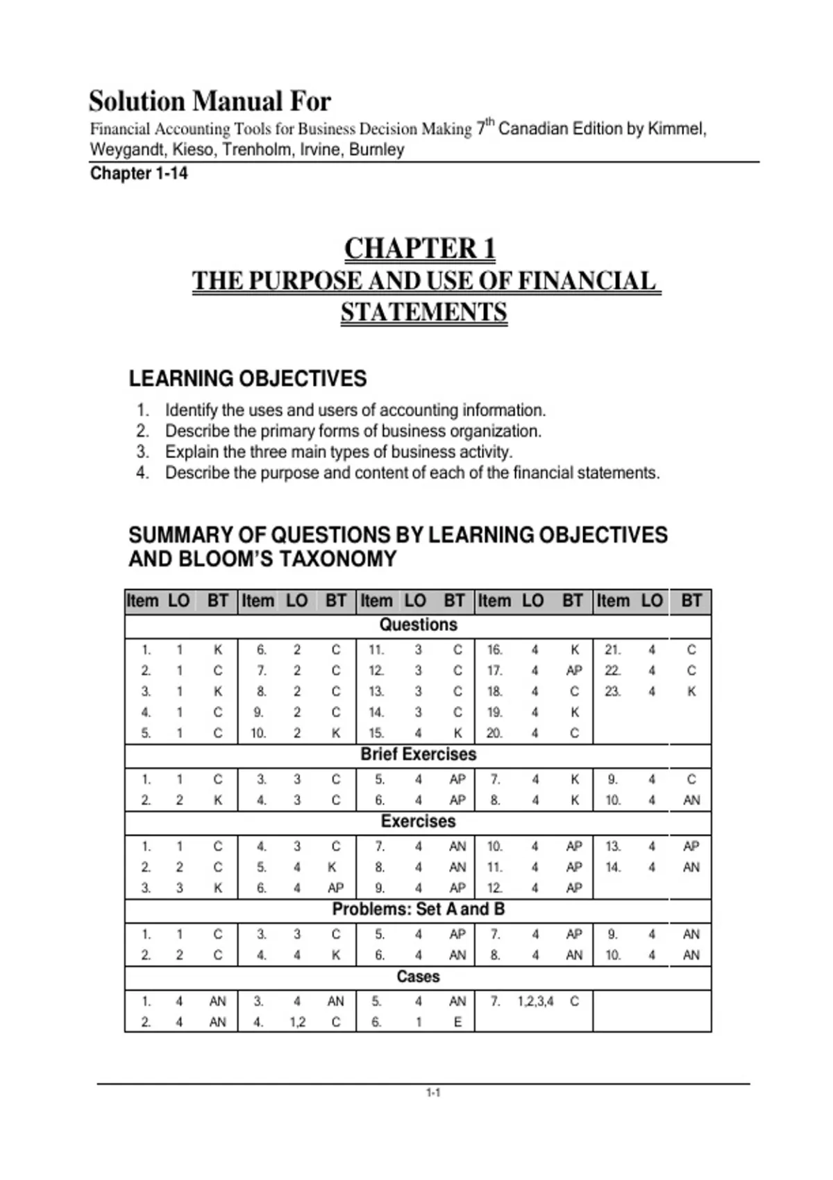 SUMMARY OF QUESTIONS BY LEARNING OBJECTIVES