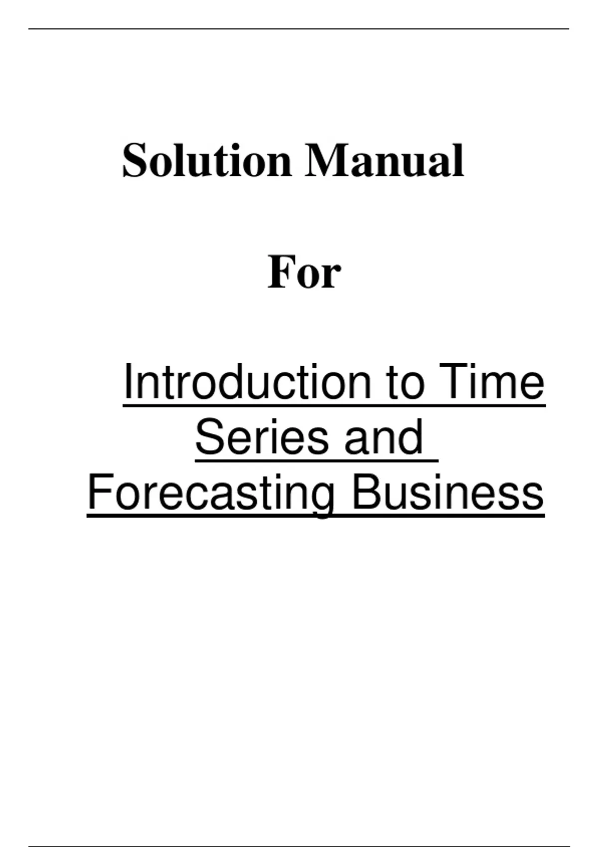 This solution manual provides detailed, step-by-step solutions for Introduction to Time Series and Forecasting, 3rd Edition by Peter J. Brockwell and Richard A. Davis. It covers key topics in time series analysis and forecasting, including stochastic processes, ARMA models, ARIMA modeling, spectral analysis, forecasting methods, and practical applications in business and economics. The material is designed to support homework, exam preparation, and a comprehensive understanding of time series modeling and forecasting techniques.