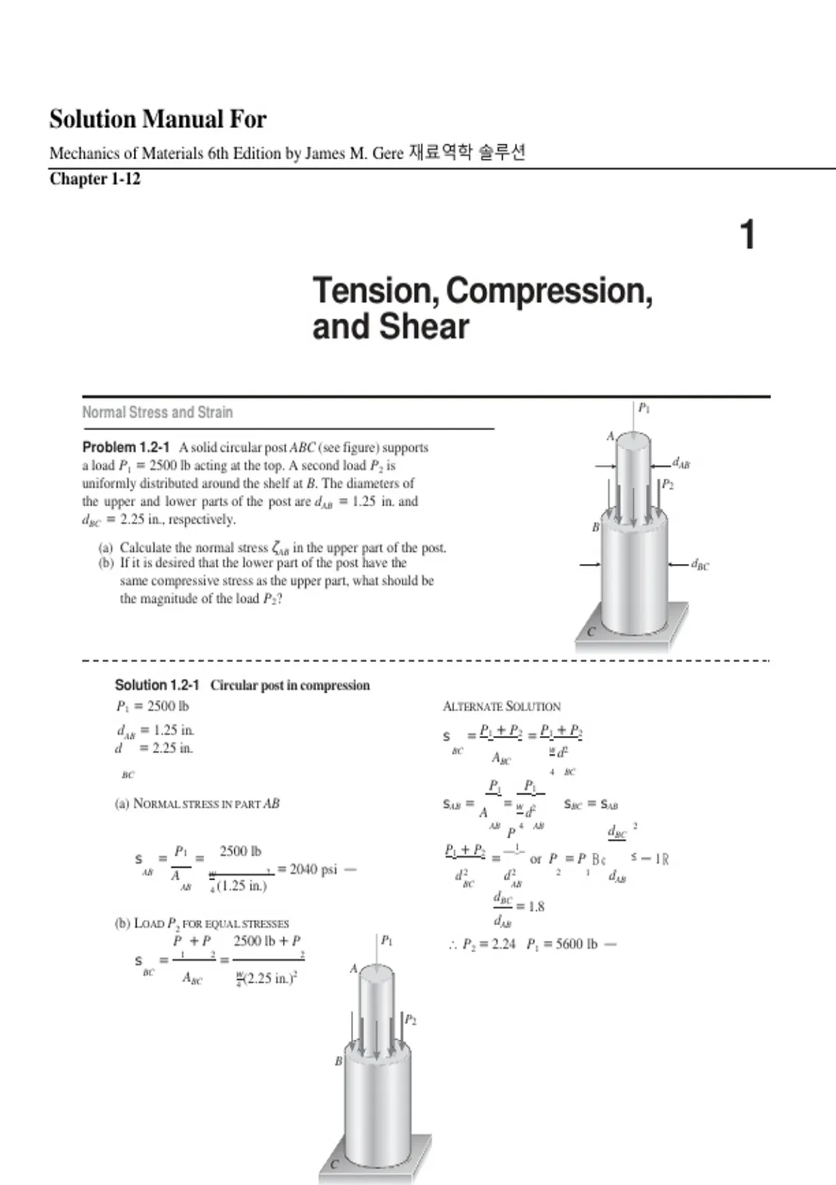 Mechanics of Materials 6th Edition by James M. Gere 재료역학 솔루션