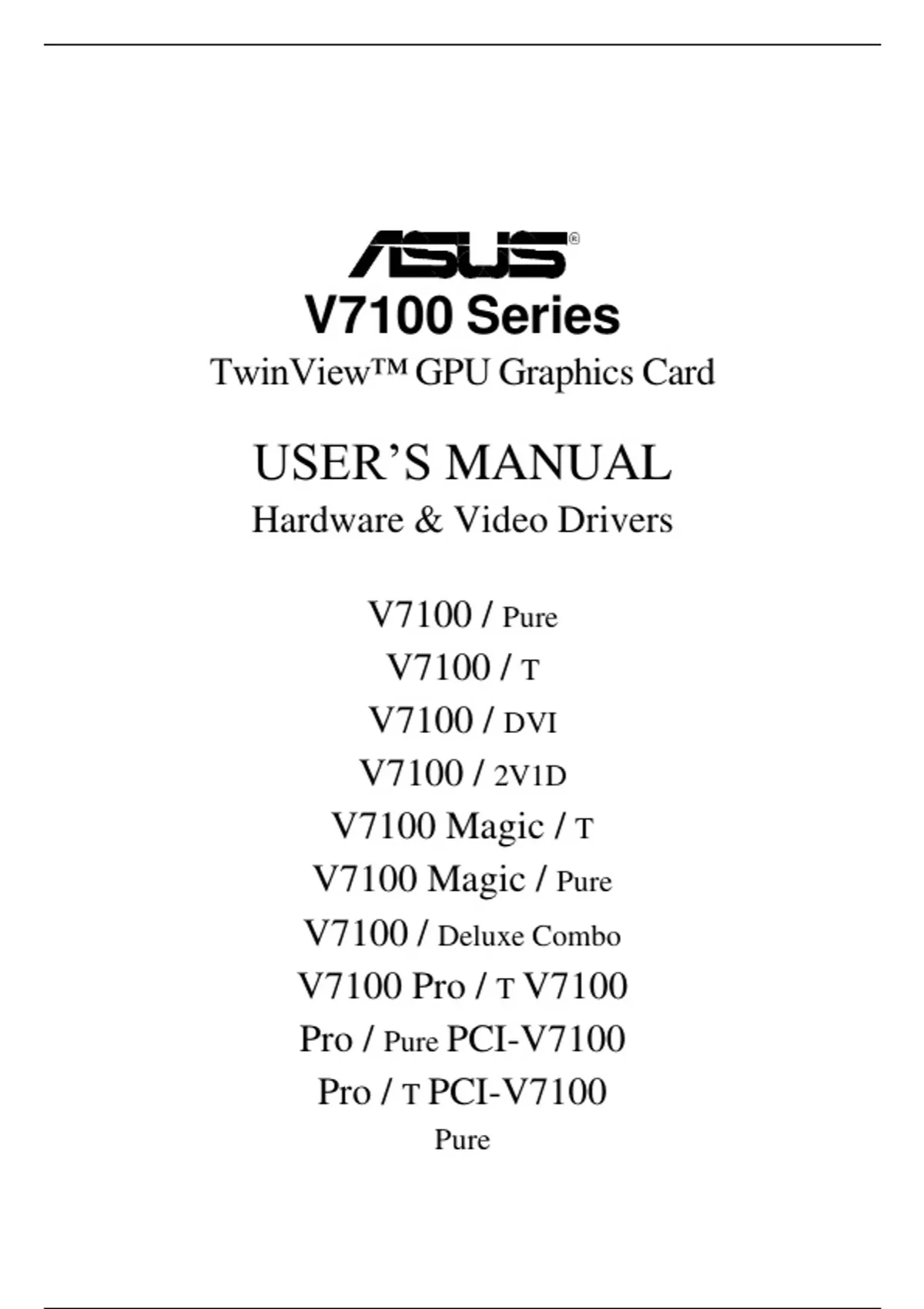 Summary ASUS V7100 Series TwinView GPU Graphics Card User’s Manual v1.03 (E833) | Updated Latest 2025–2026