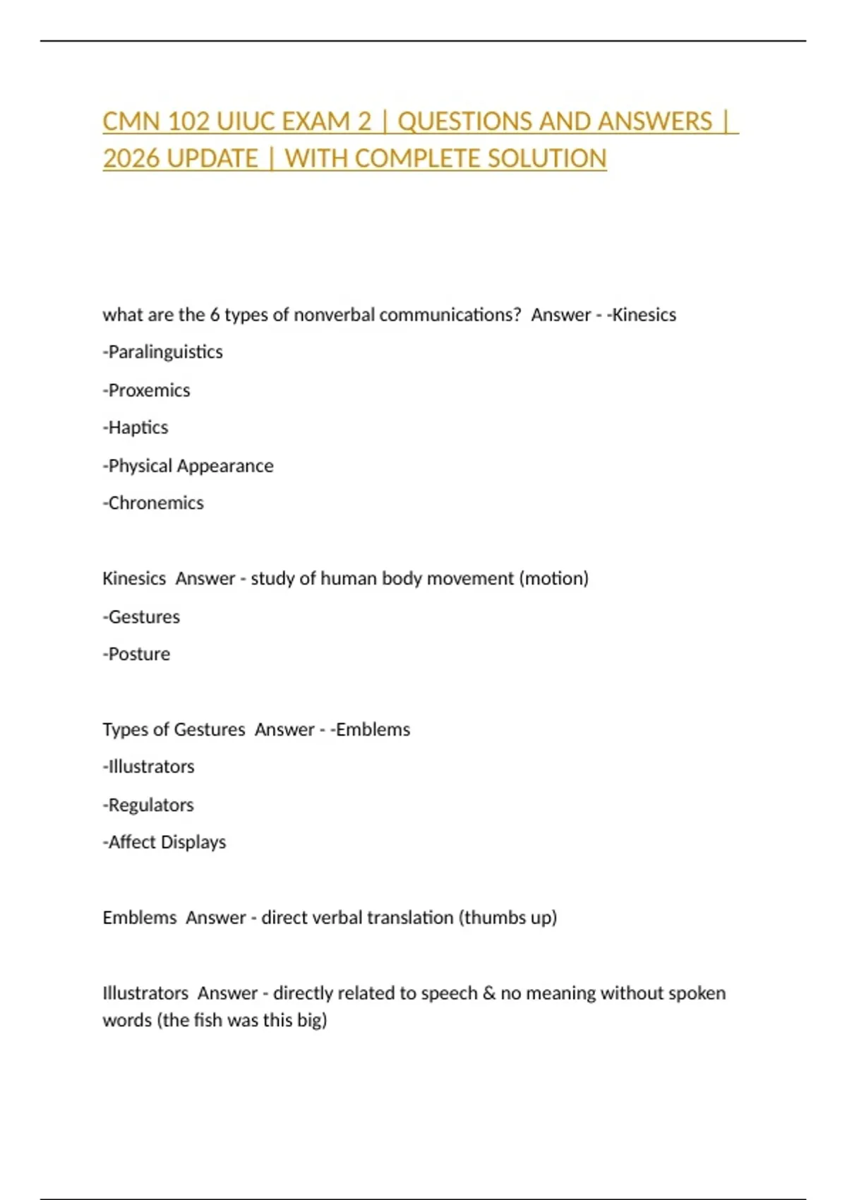 CMN 102 UIUC EXAM 2 | QUESTIONS AND ANSWERS | 2026 UPDATE | WITH COMPLETE SOLUTION