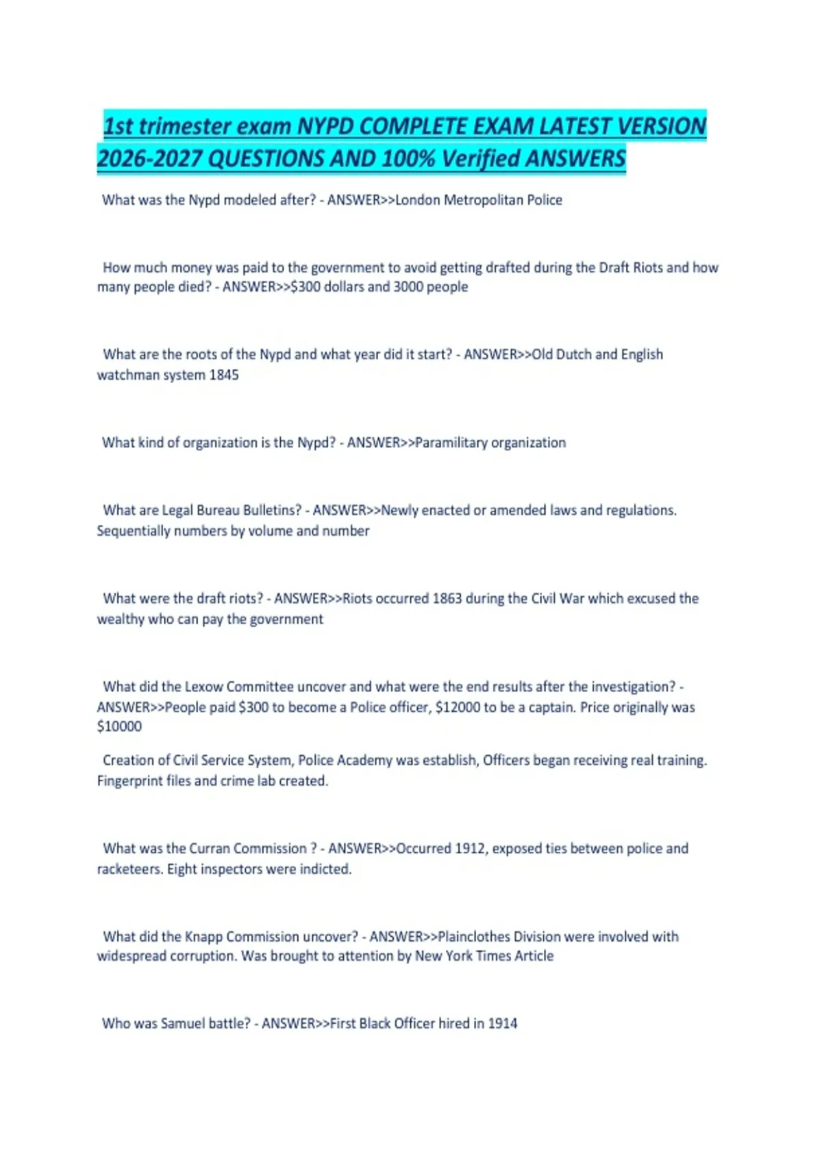 1st trimester exam NYPD COMPLETE EXAM LATEST VERSION QUESTIONS AND 100- Verified ANSWERS .pdf