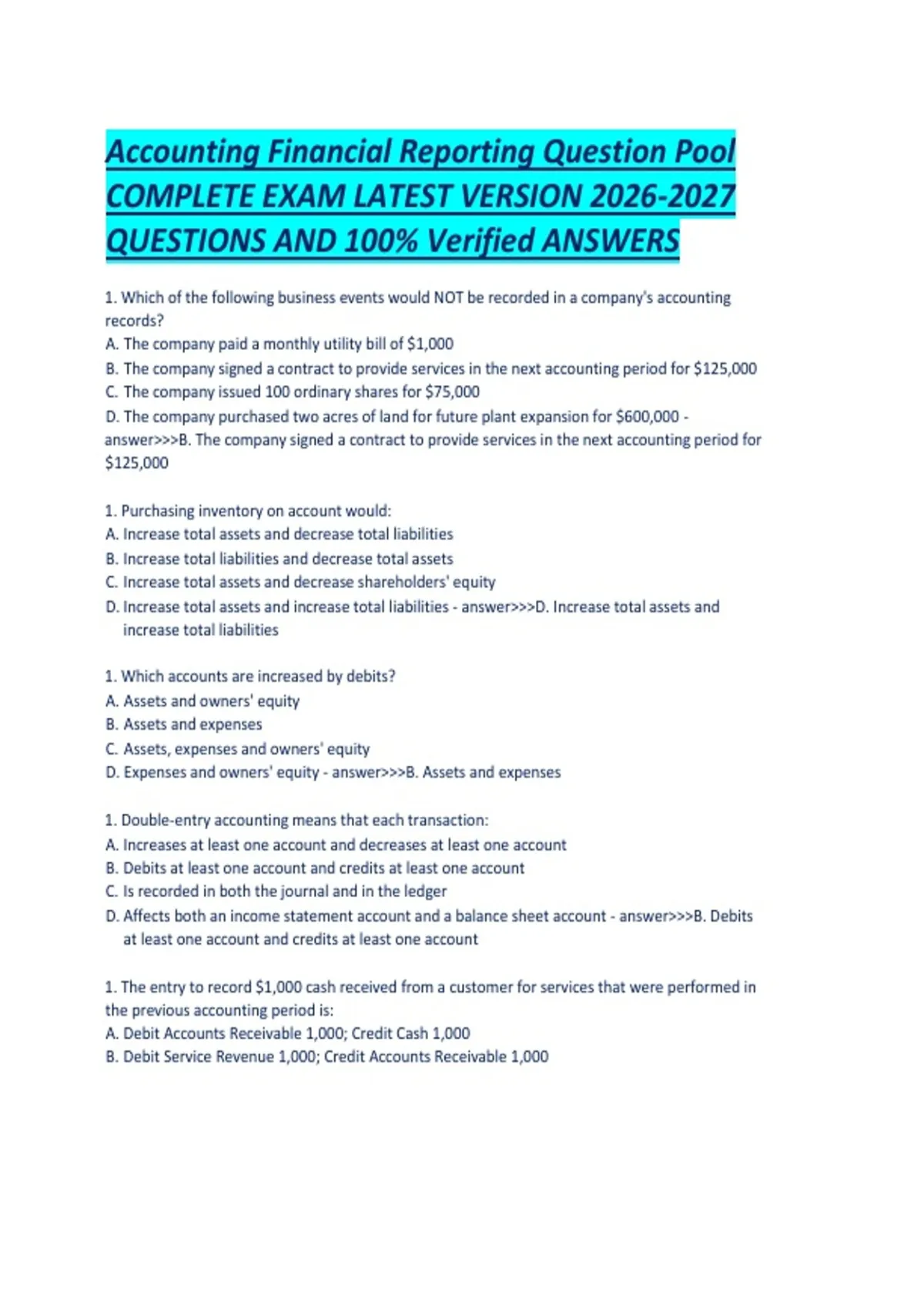 Accounting Financial Reporting Question Pool COMPLETE EXAM LATEST VERSION QUESTIONS AND 100- Verified ANSWERS .pdf