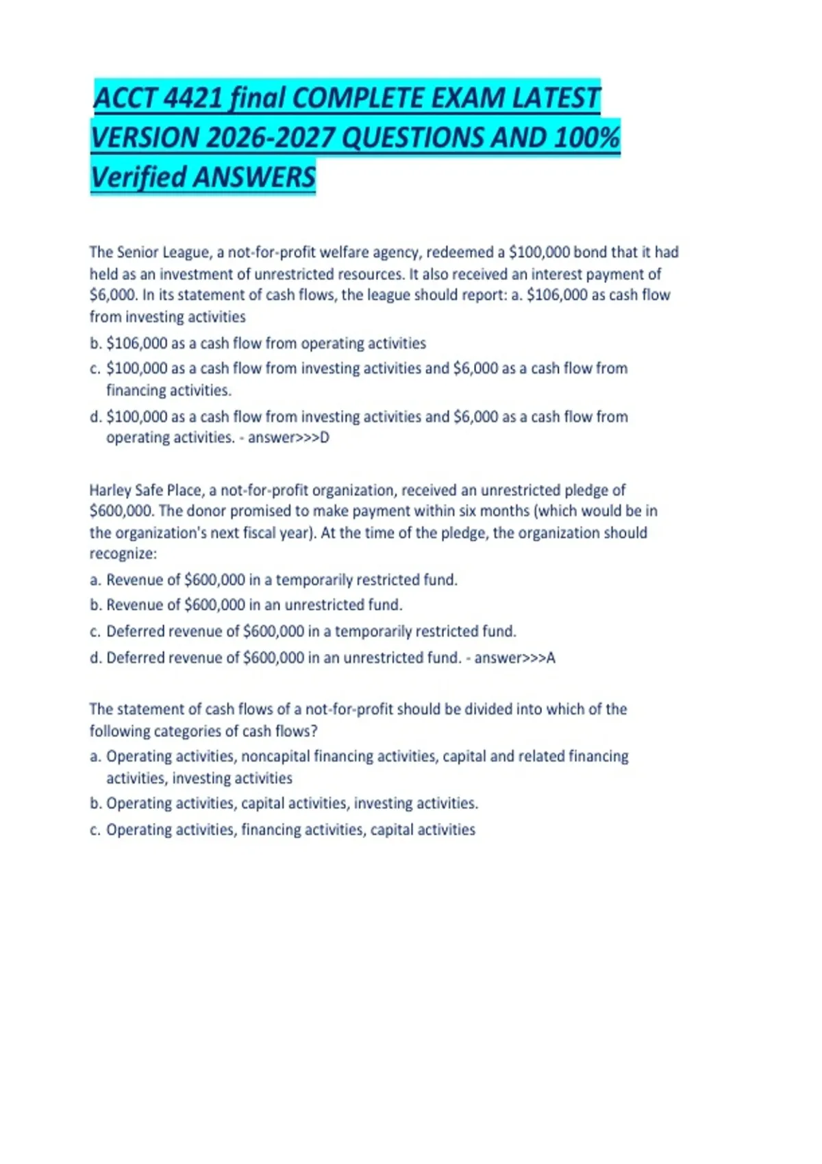 ACCT 4421 final COMPLETE EXAM LATEST VERSION QUESTIONS AND 100- Verified ANSWERS.pdf
