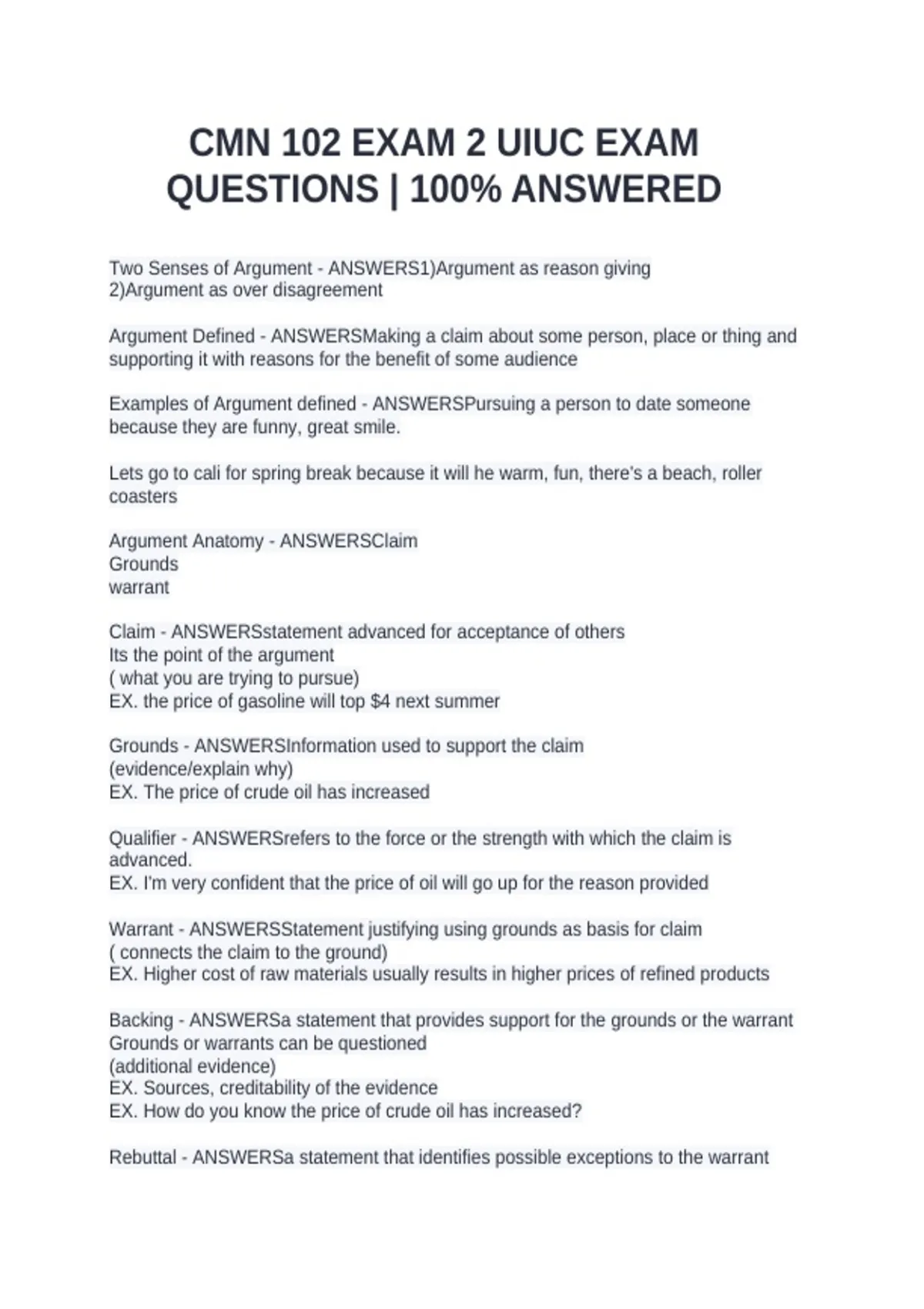 Argument Defined - ANSWERSMaking a claim about some person, place or thing and