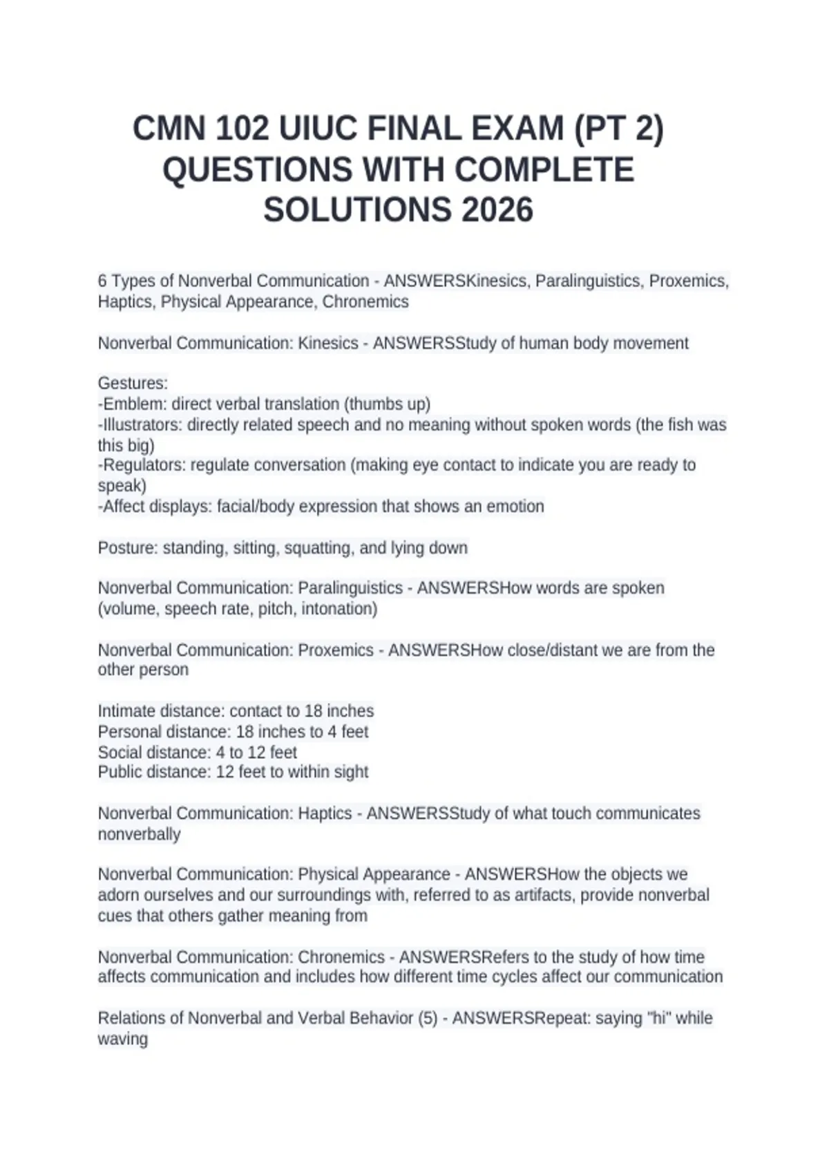 CMN 102 UIUC FINAL EXAM (PT 2) QUESTIONS WITH COMPLETE SOLUTIONS 2026