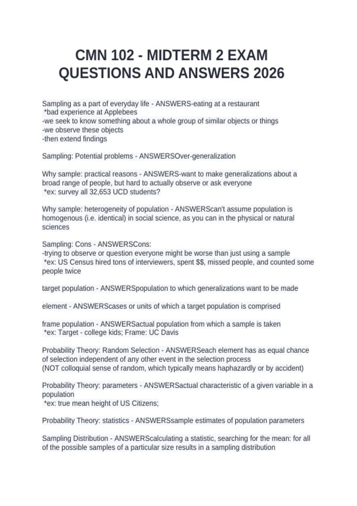 Probability Theory: statistics - ANSWERSsample estimates of population parameters
