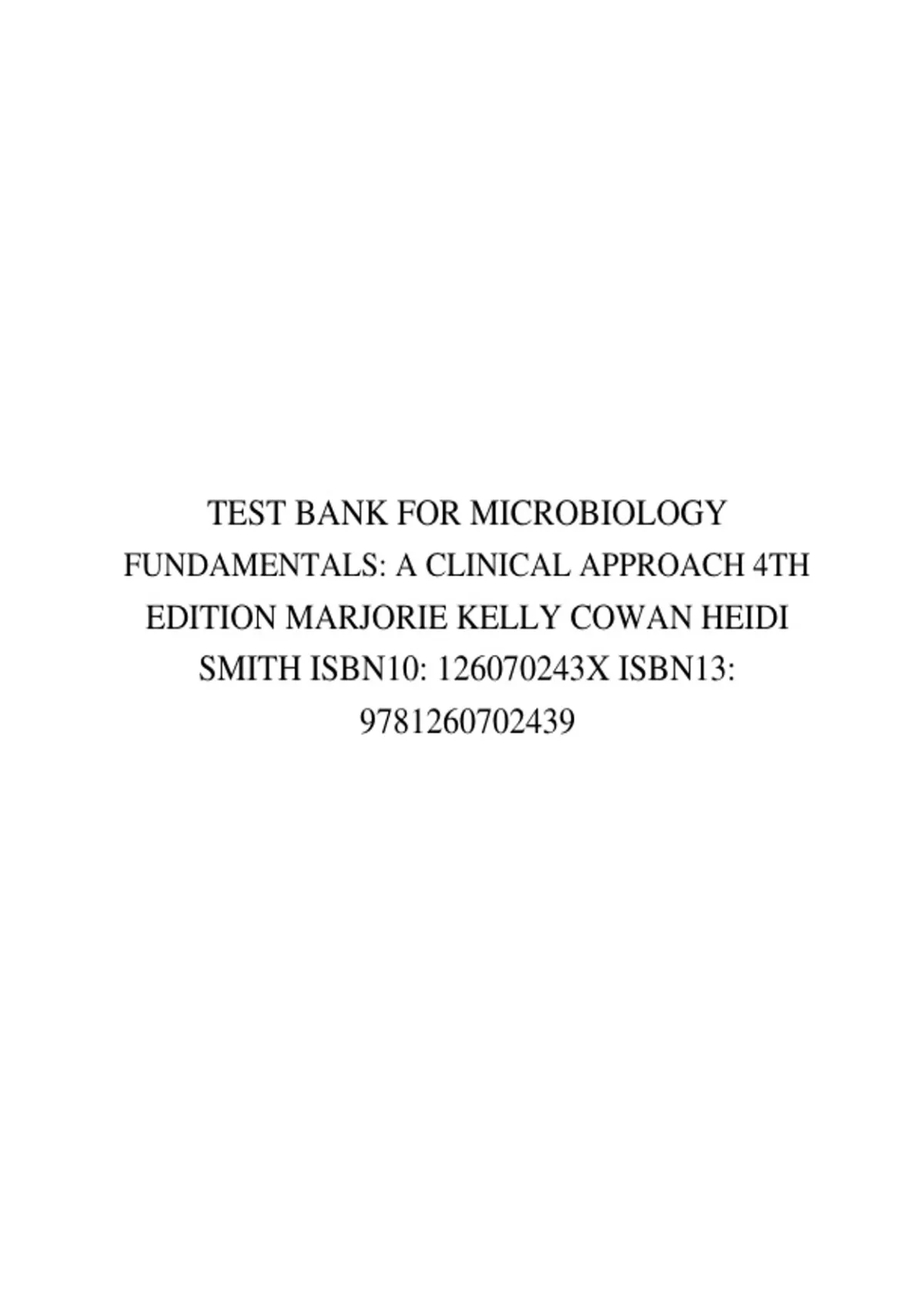 TEST BANK for Microbiology Fundamentals: A Clinical Approach, 4th Edition by Marjorie Kelly Cowan, Heidi Smith & Jennifer Lusk — All Chapters Complete || Latest 2027/2028 Verified Questions & Answers