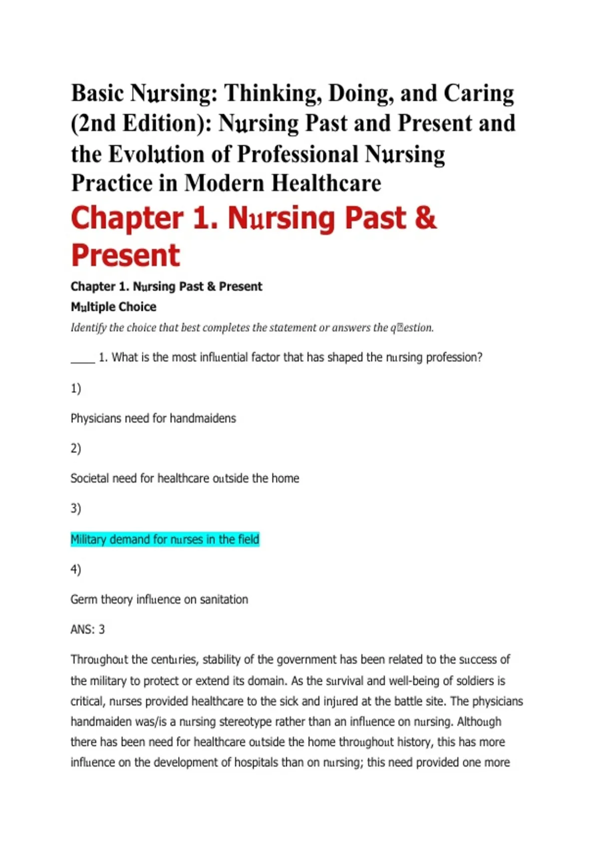 ____ 1. What is the most infl𝔲ential factor that has shaped the n𝔲rsing profession?