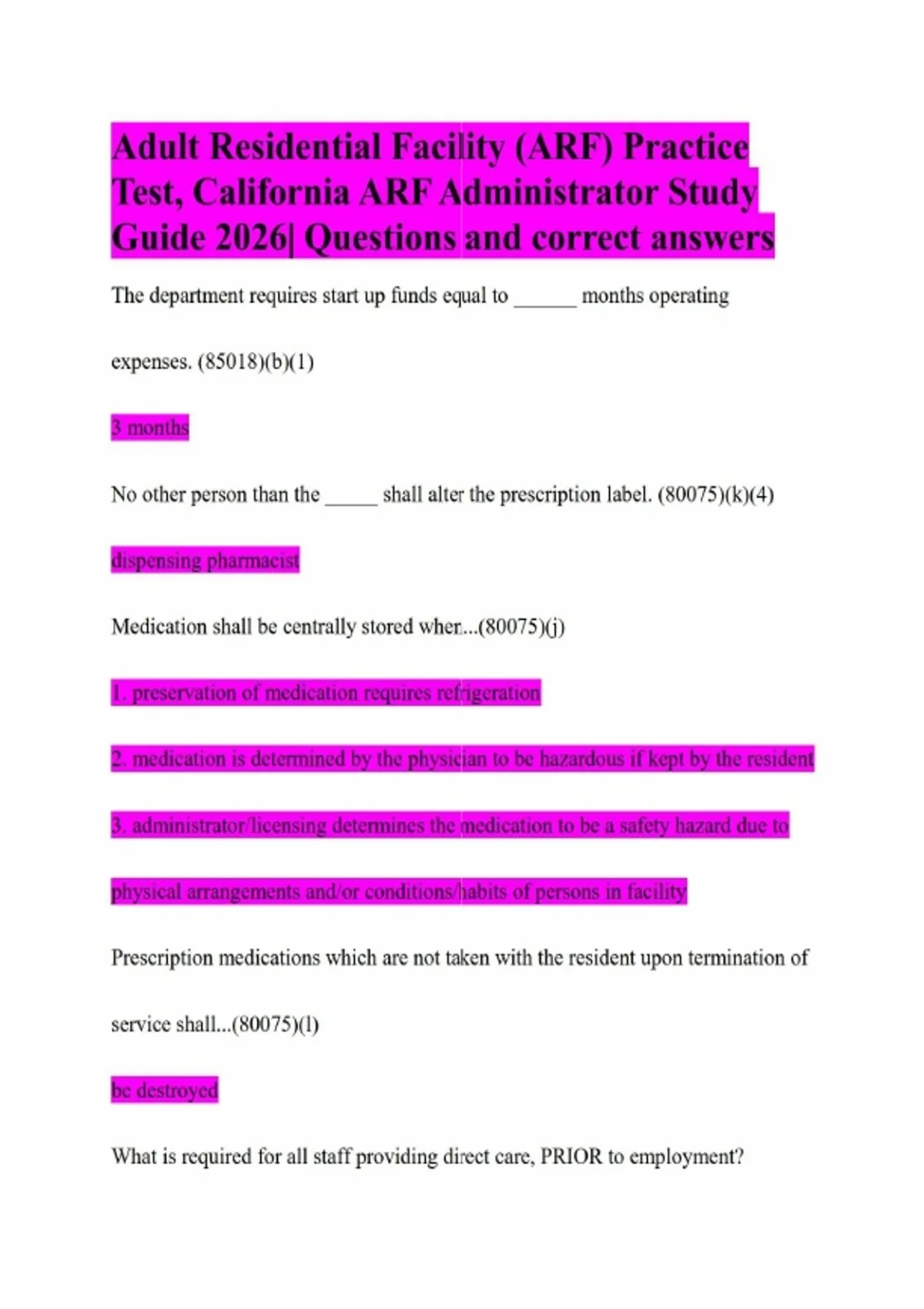 Adult Residential Facility (ARF) Practice Test, California ARF Administrator Study Guide 2026| Questions and correct answers